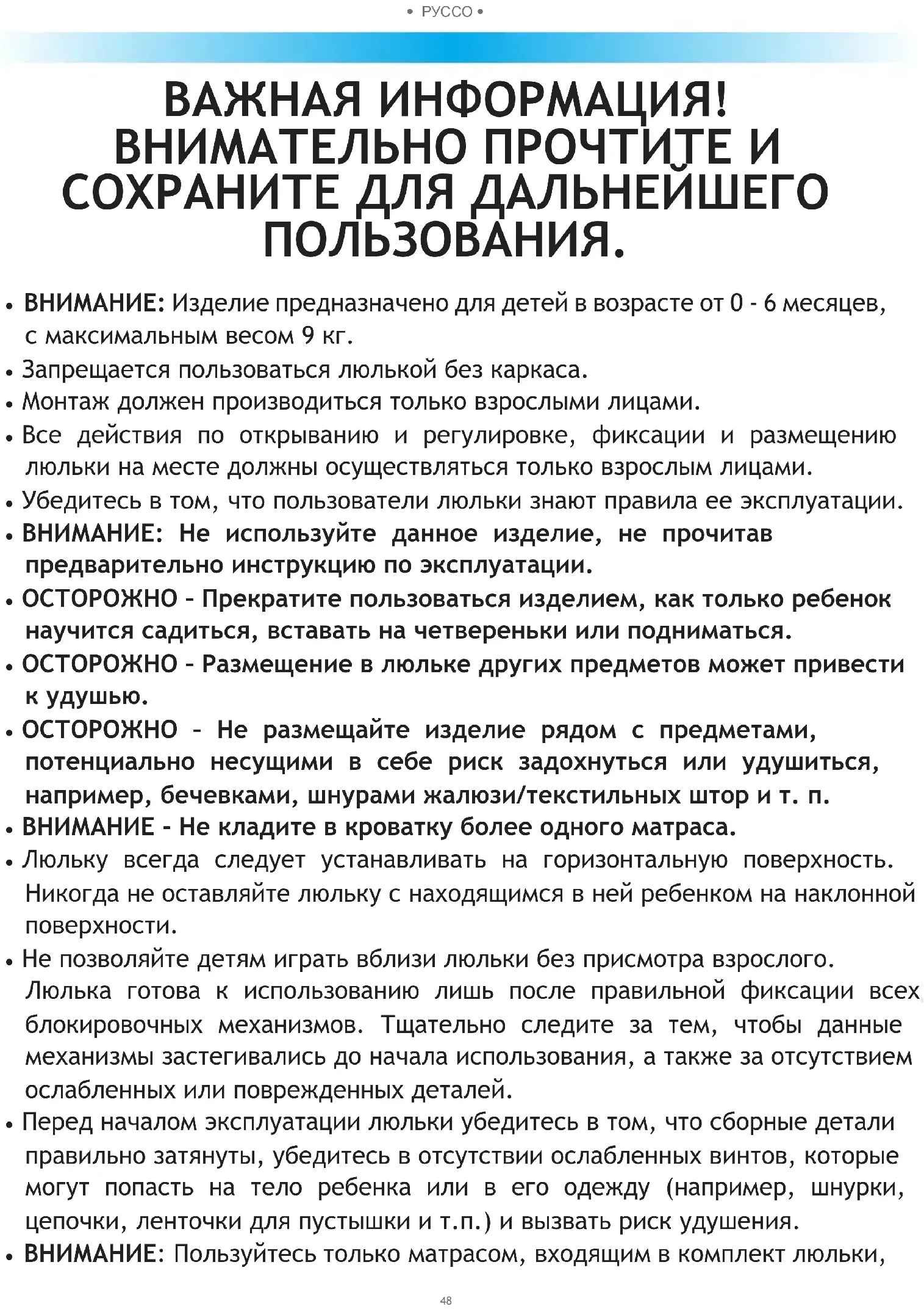 - ВНИМАНИЕ: Пользуйтесь только матрасом, входящим в комплект люльки,49