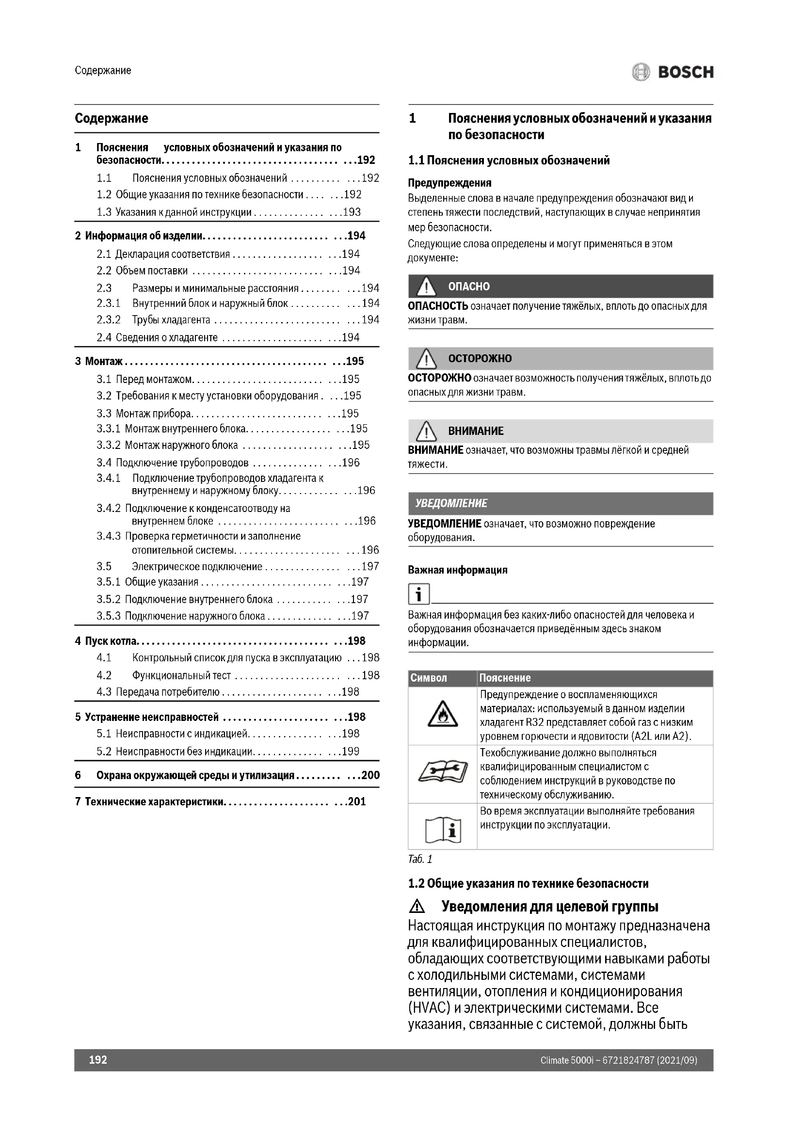 H Уведомления для целевой группы Настоящая инструкция по монтажу предназначена для квалифицированных специалистов, обладающих соответствующими навыками работы с холодильными системами, системами вентиляции, отопления и кондиционирования (HVAC) и электрическими системами. Все указания, связанные с системой, должны быть 1 Пояснения условных обозначений и указания по безопасности. . . . . . . . . . . . . . . . . . . . . . . . . . . . . . . . . . . . . .192