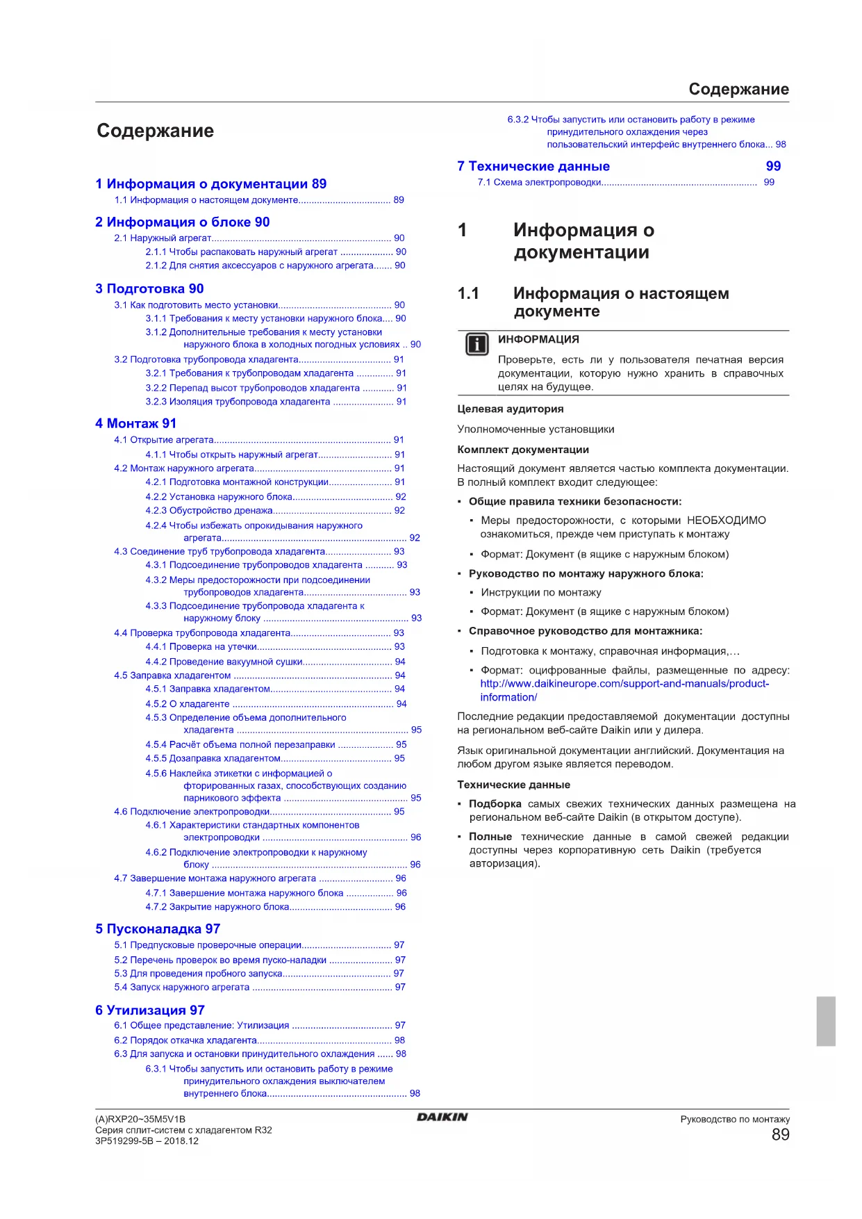 - Полные технические данные в самой свежей редакции доступны через корпоративную сеть Daikin (требуется авторизация).2 Информация о блоке Руководство по монтажу (A)RXP20~35M5V1BСерия сплит-систем с хладагентом R323P519299-5B – 2018.12 2 Информация о блоке