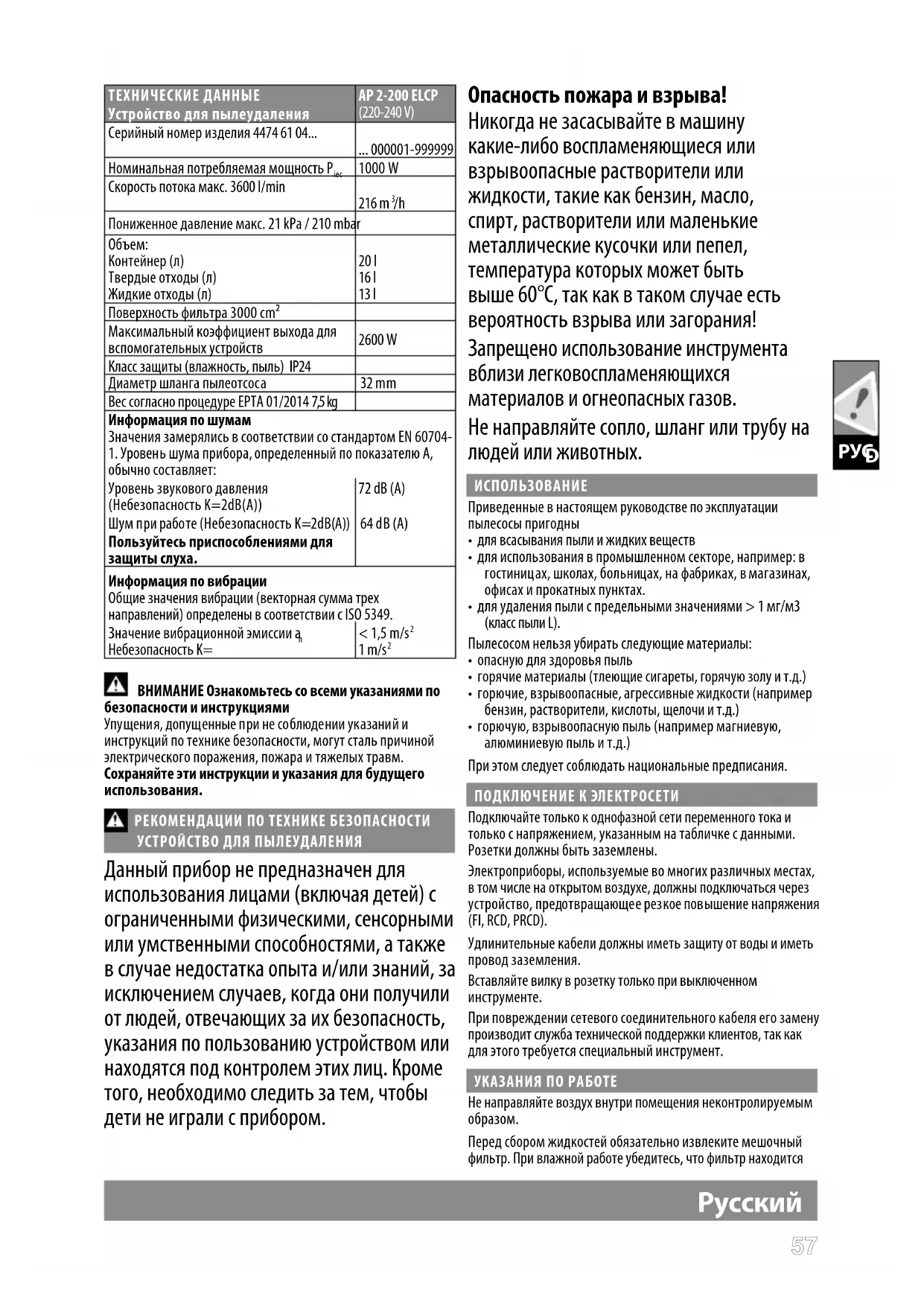 | TEXHUYECKHE DAHHbIE Устroyстvo за пьileуделеня | AP 2-200 ELCP (220-240 V) |