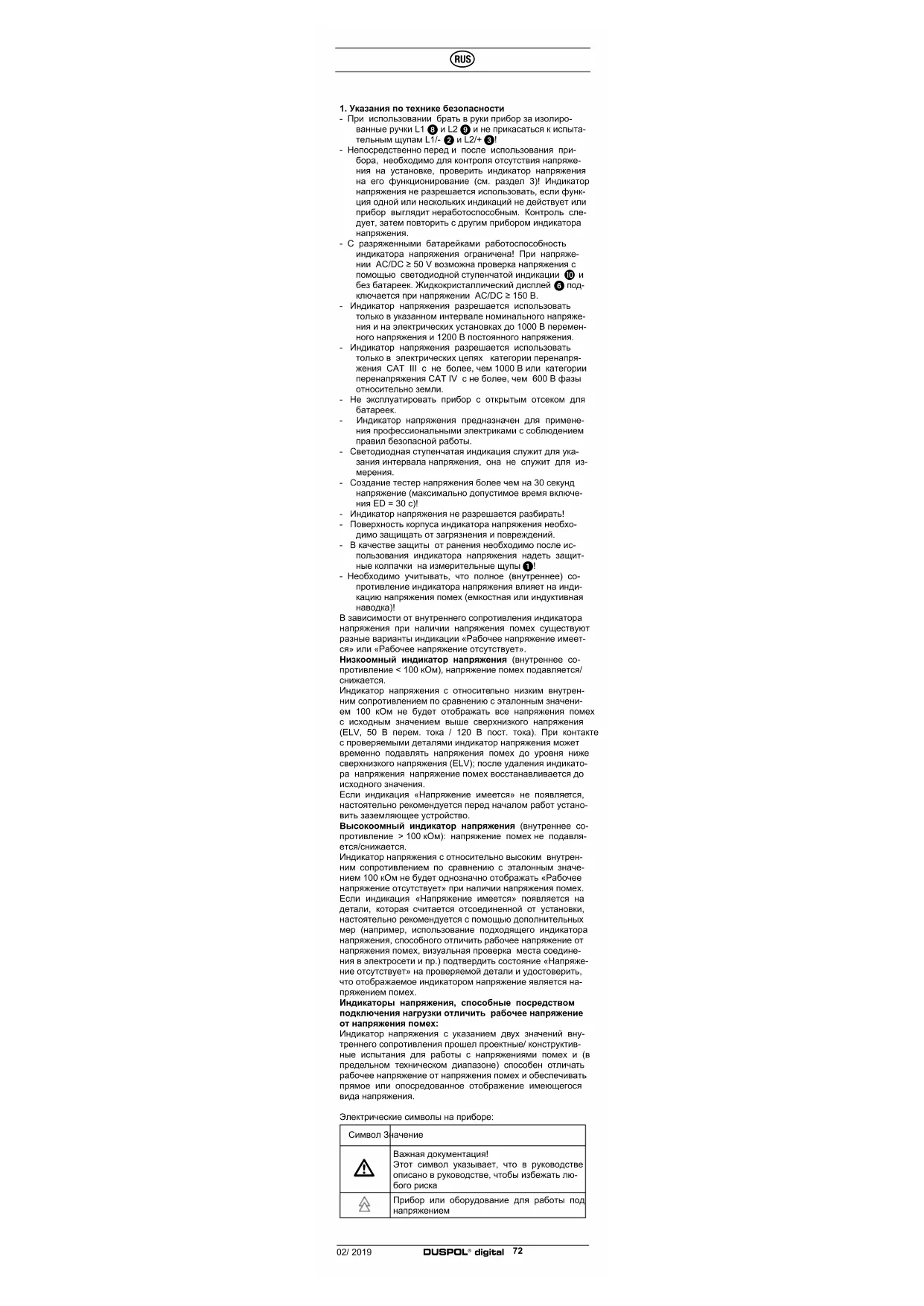 Прибор или оборудование для работы под напряжением02/ 2019 DUSPOL
