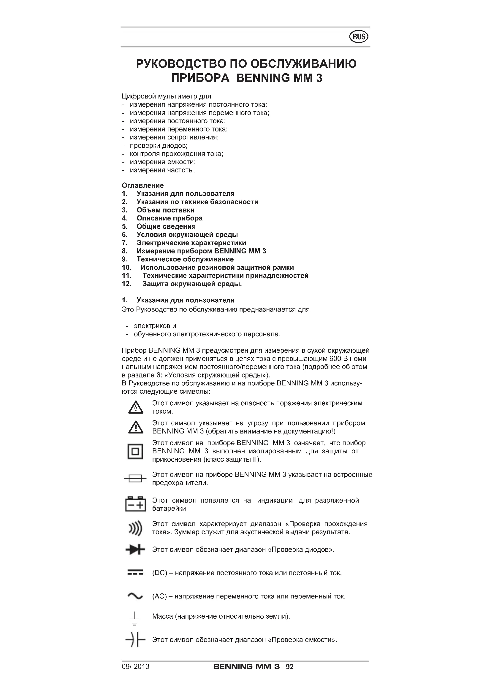 MM 3 - мультиметр BENNING - Бесплатное руководство пользователя