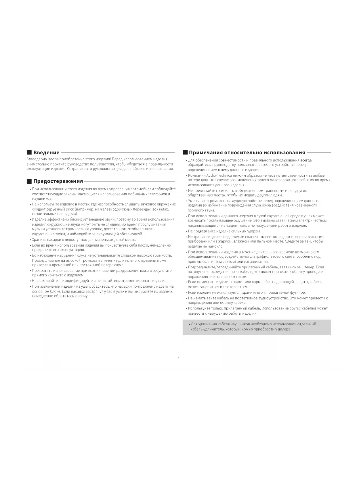 - Компания Audio-Technica никоим образом не несет ответственности за любые потери данных в случае возникновения такого маловероятного события во время использования данного изделия.