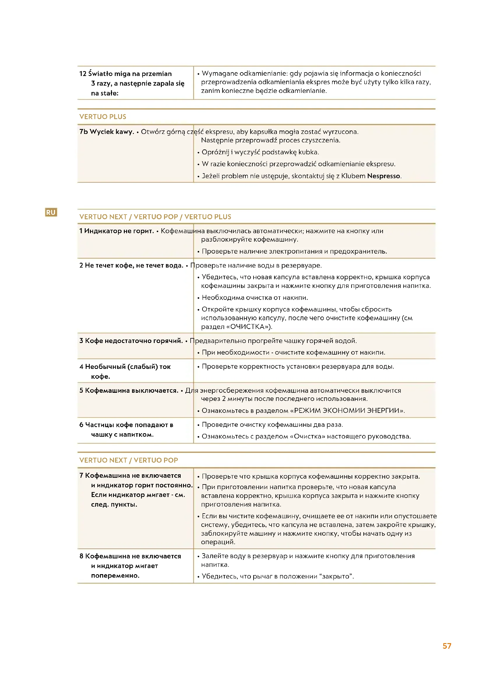 - Если проблема сохранилась, пожалуйста, обратитесь в Клуб Nespresso. 58NL