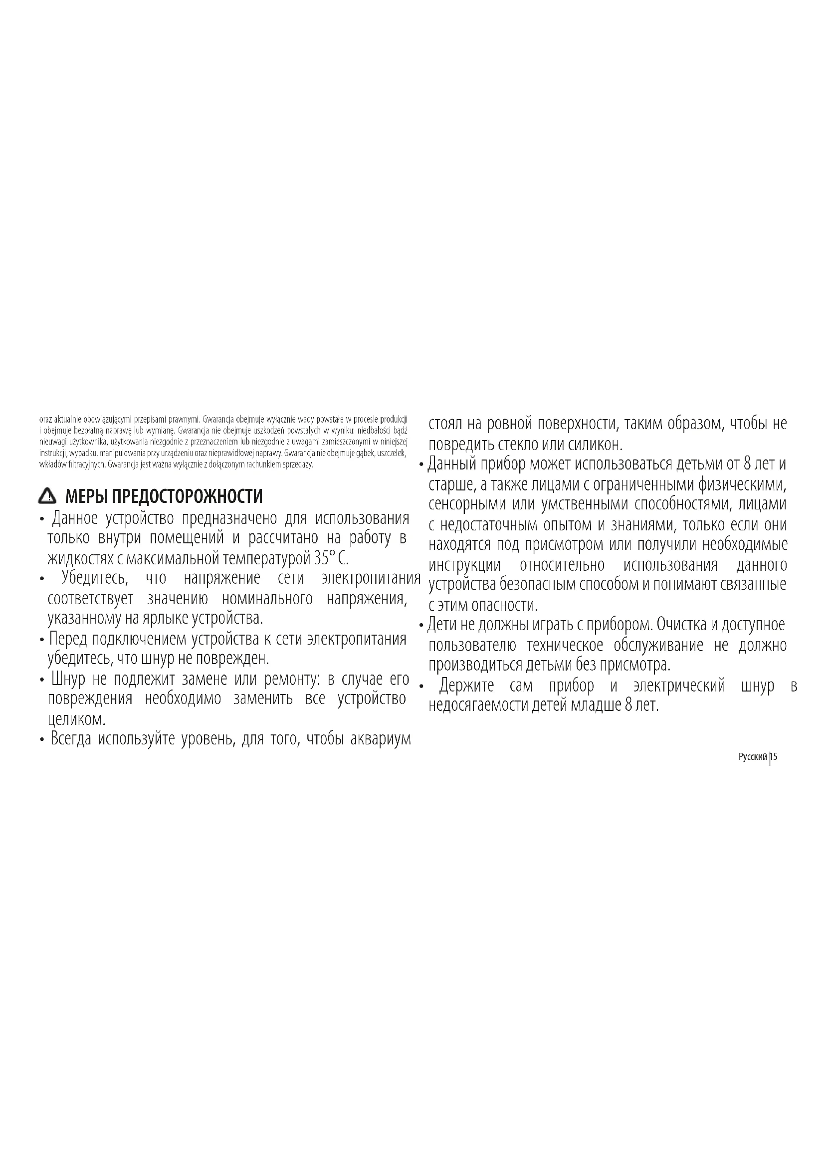 - Данное устройство предназначено для использования только внутри помещений и рассчитано на работу в жидкостях с максимальной температурой 35° C.