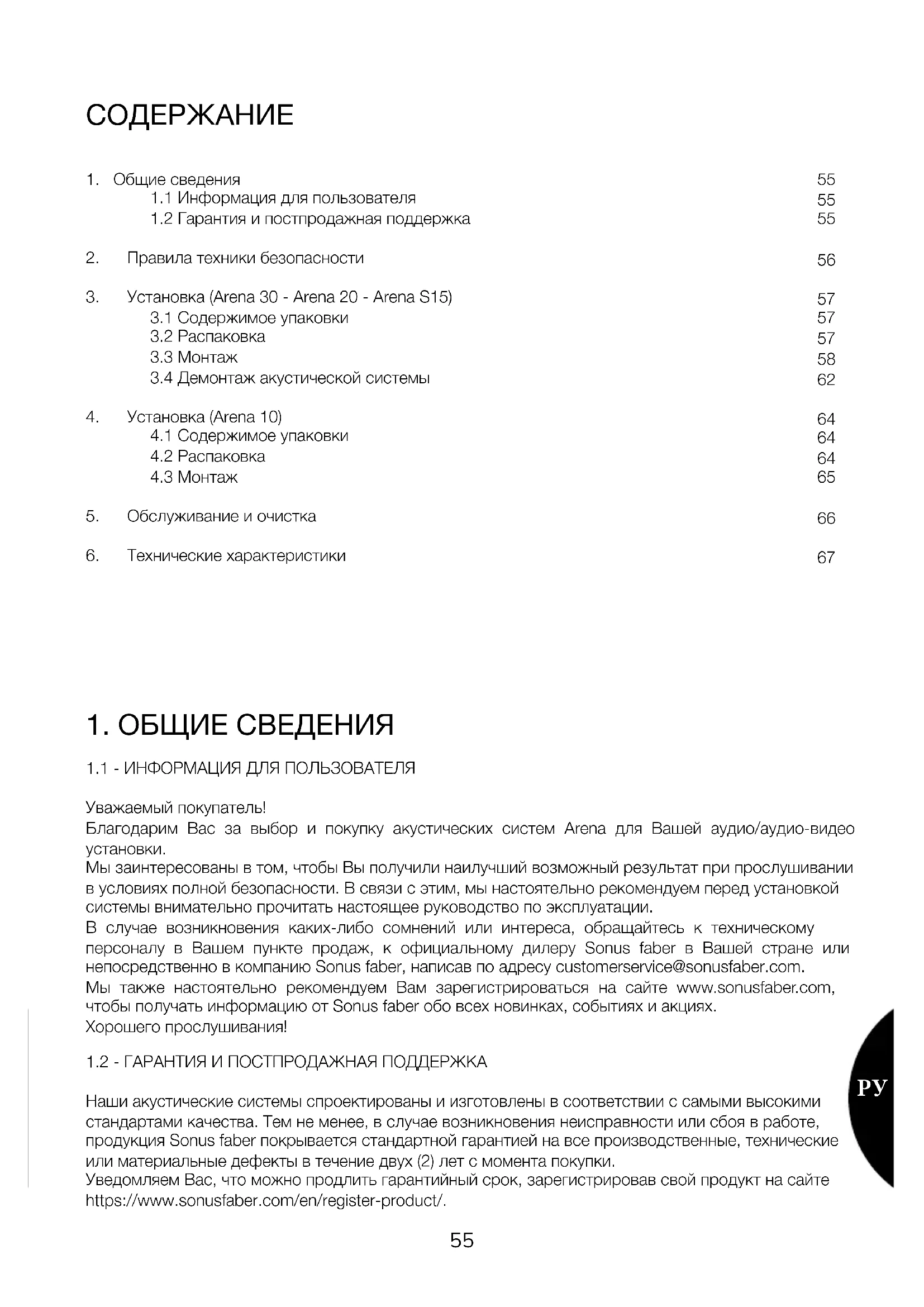 РУКОВОДСТВО ПОЛЬЗОВАТЕЛЯ ARENA Sonus Faber