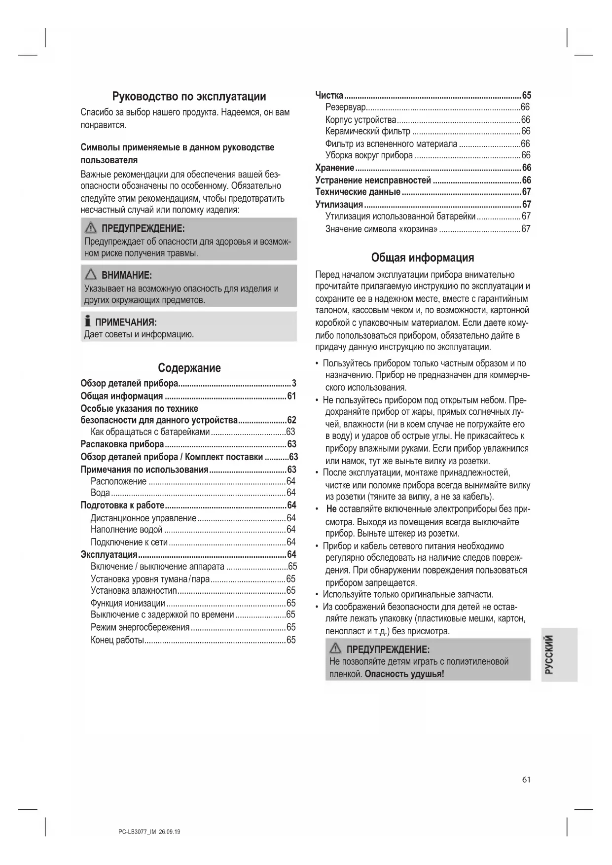 - Понижение содержание электростатического элек- тричества в воздухе.PC-LB3077_IM 26.09.19