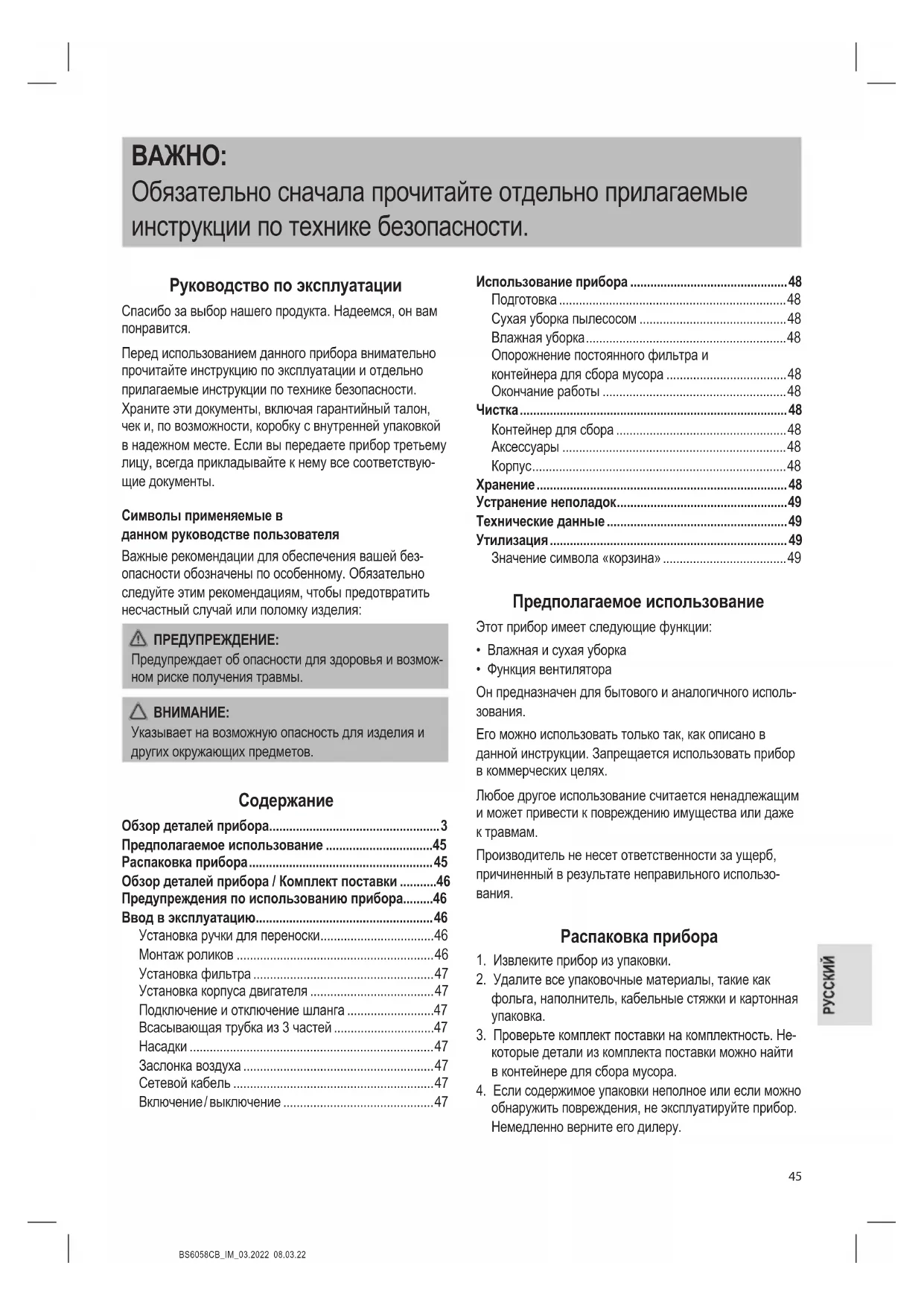 - Мы рекомендуем хранить прибор в оригинальной упаковке, если вы не собираетесь использовать его в течение длительного периода времени.BS6058CB_IM_03.2022 08.03.22