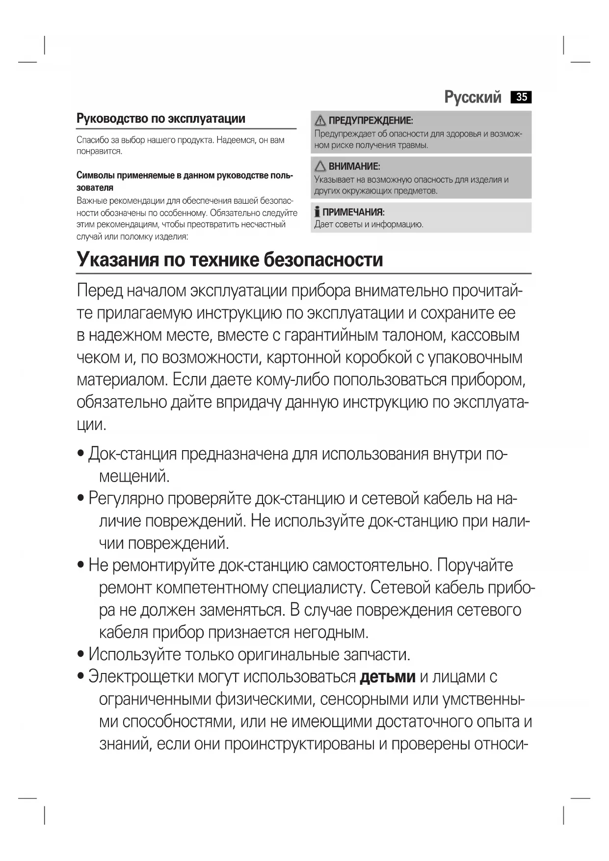 - Не ремонтируйте док-станцию самостоятельно. Поручайте ремонт компетентному специалисту. Сетевой кабель прибо- ра не должен заменяться. В случае повреждения сетевого кабеля прибор признается негодным.