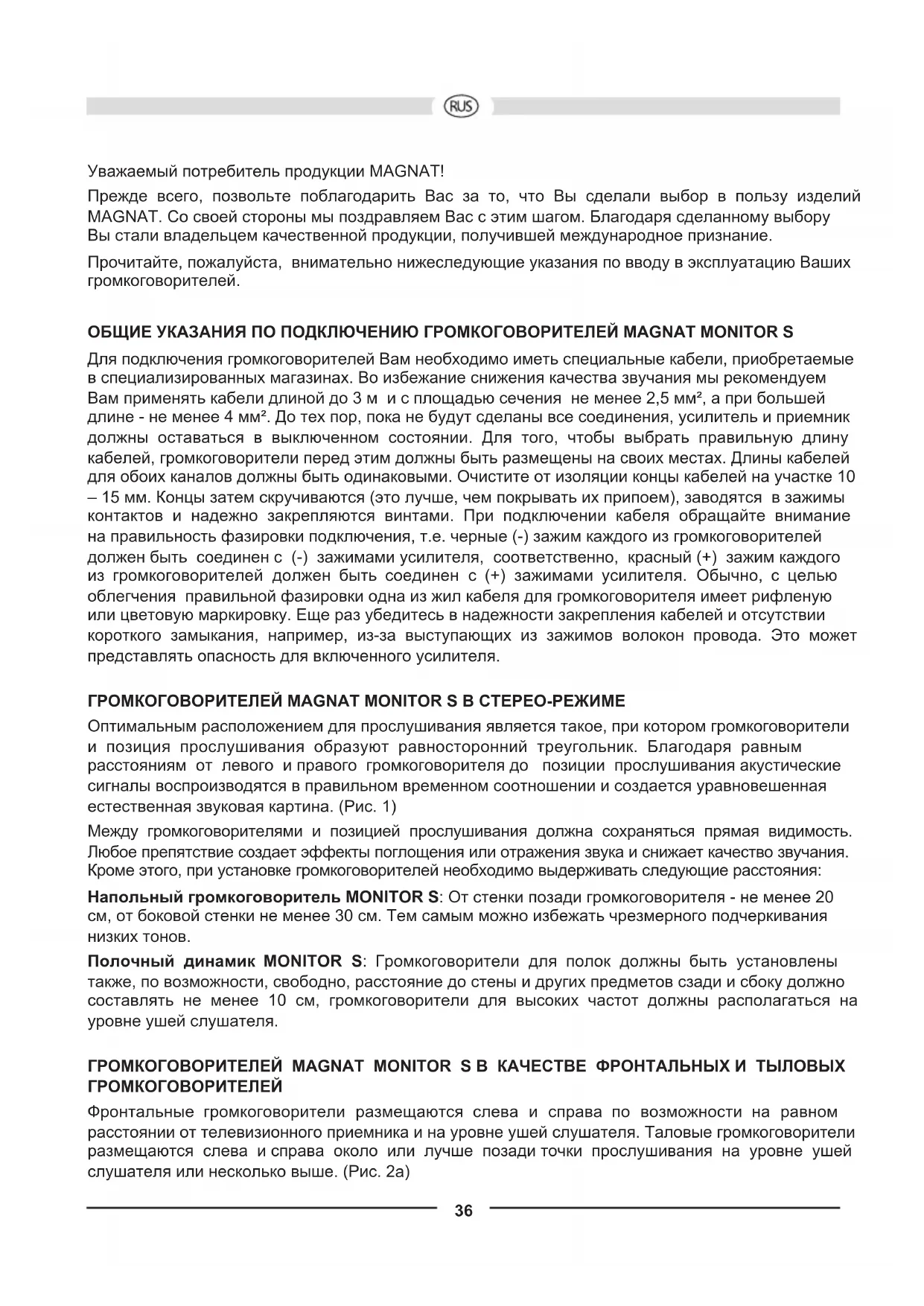 РУКОВОДСТВО ПОЛЬЗОВАТЕЛЯ Monitor S 30 MAGNAT