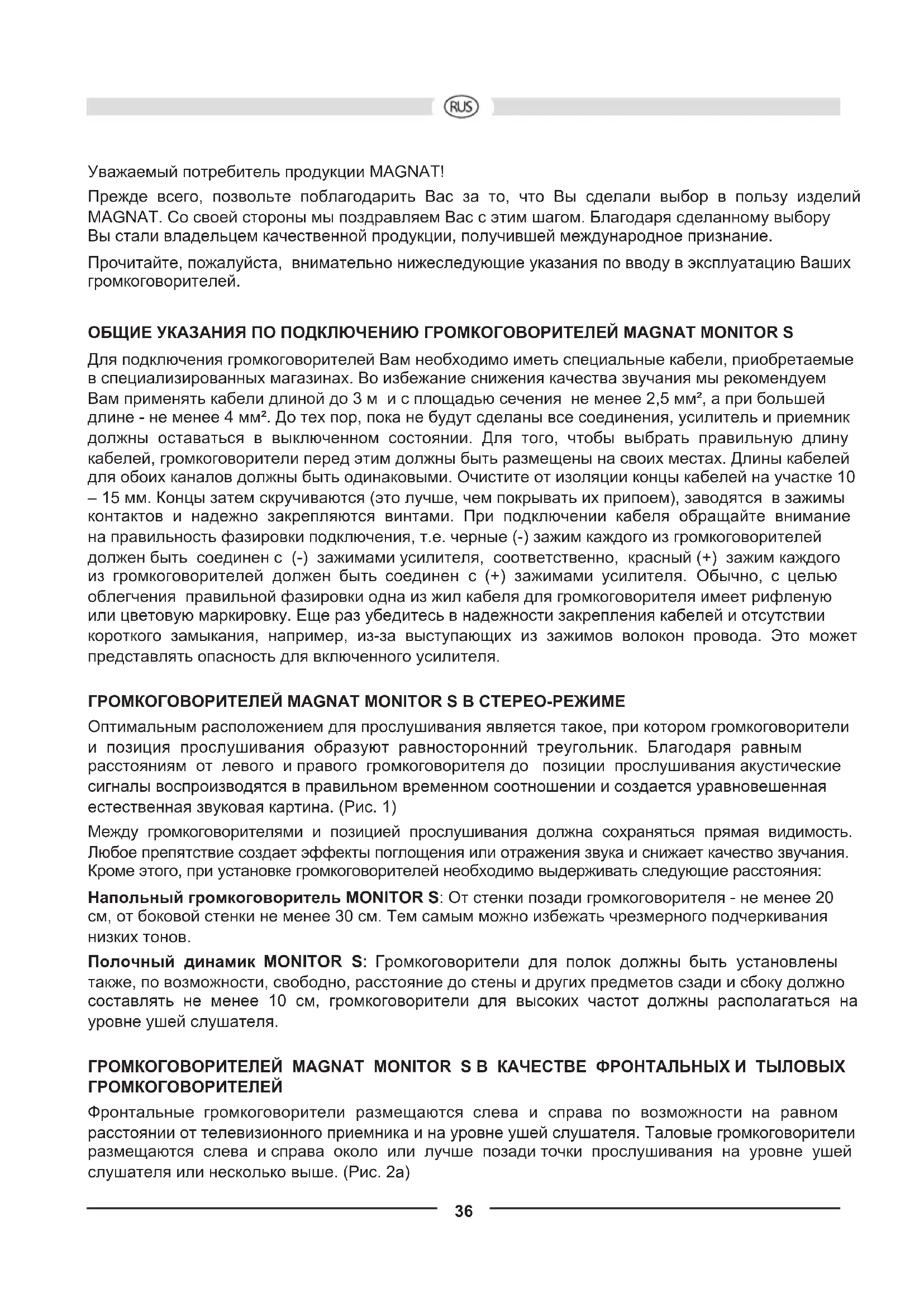 ОБЩИЕ УКАЗАНИЯ ПО ПОДКЛЮЧЕНИЮ ГРОМКОГОВОРИТЕЛЕЙ MAGNAT MONITOR S