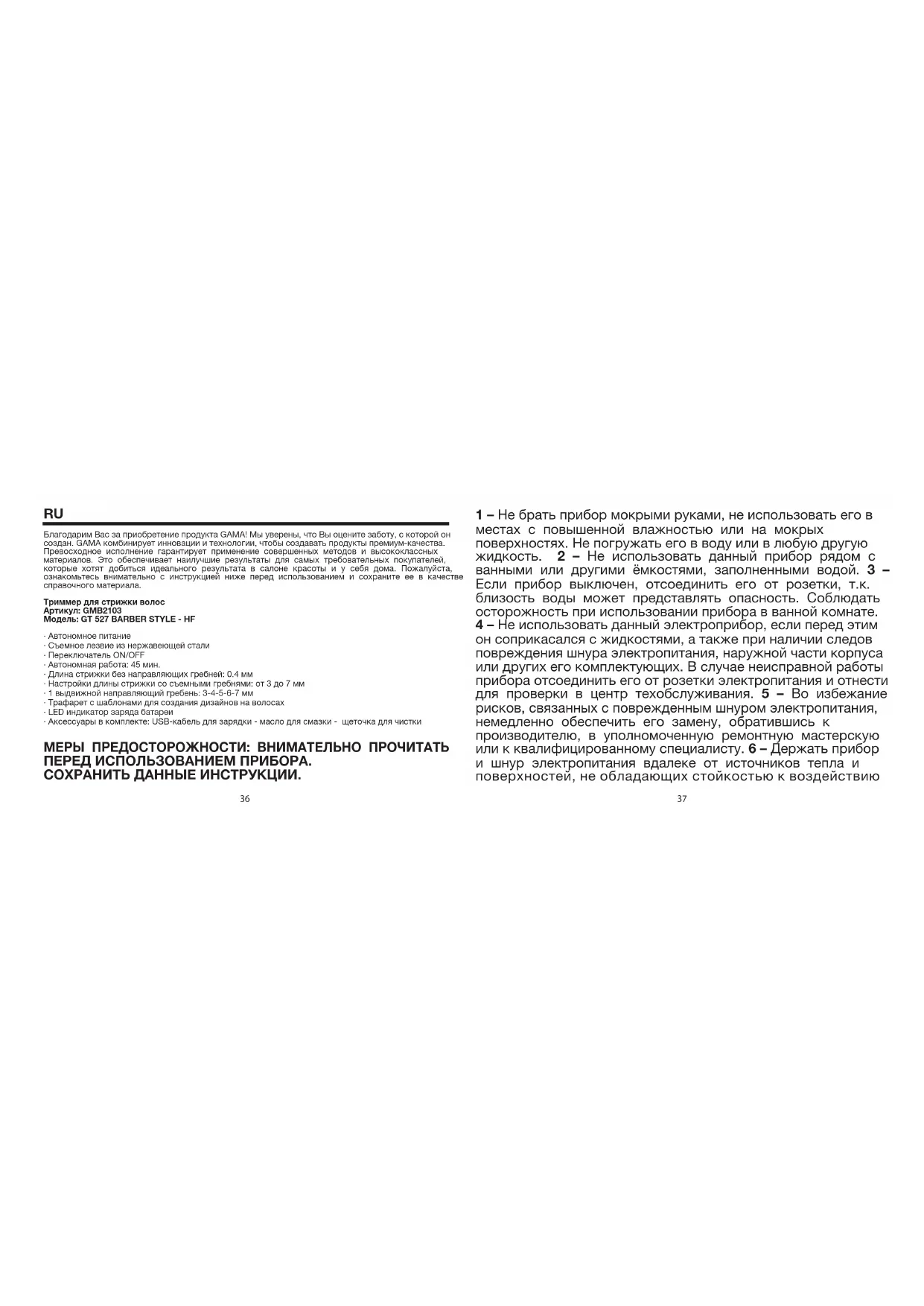 РУКОВОДСТВО ПОЛЬЗОВАТЕЛЯ GT527 Barber Style GAMA