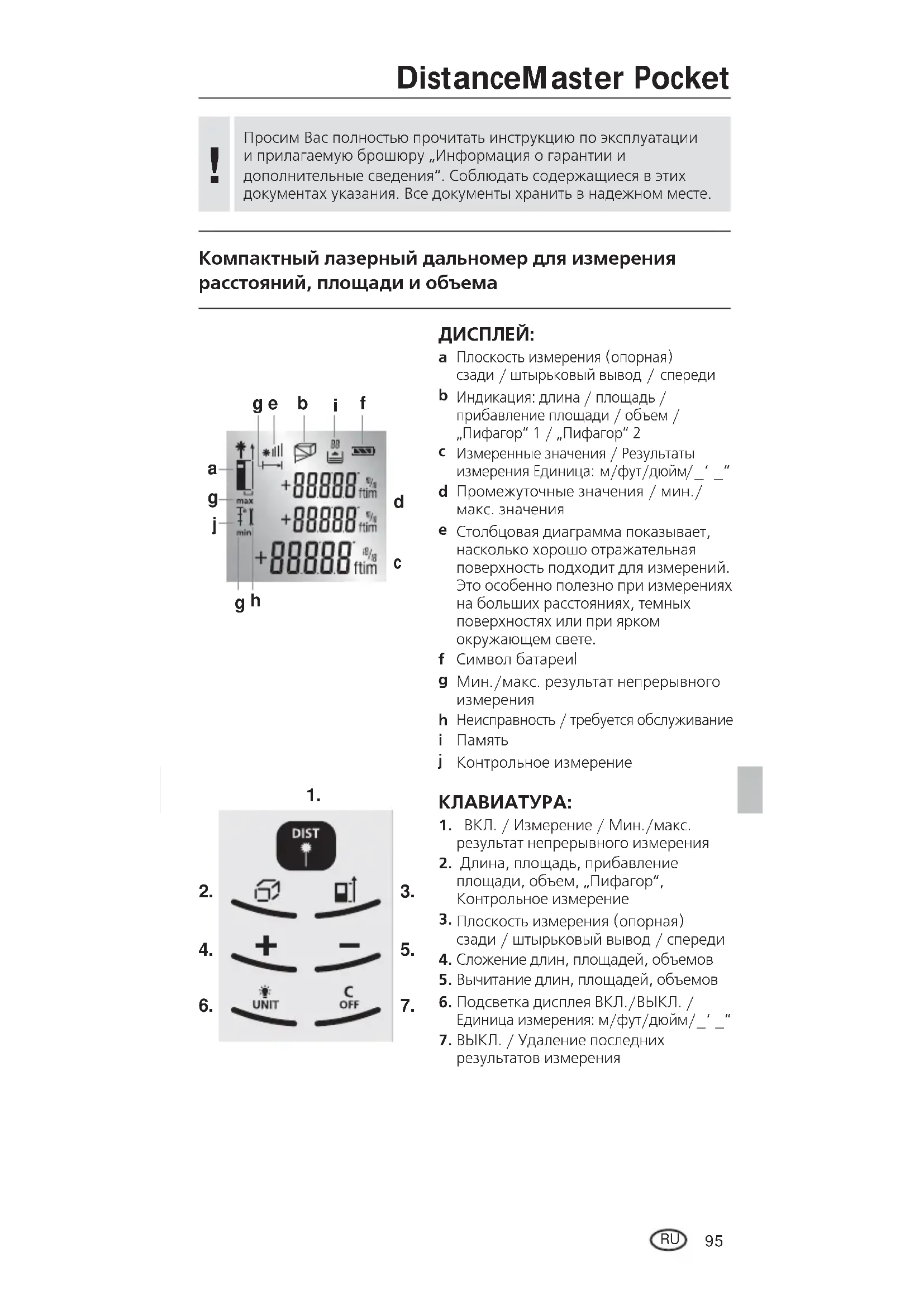РУКОВОДСТВО ПОЛЬЗОВАТЕЛЯ DistanceMaster Pocket Laserliner