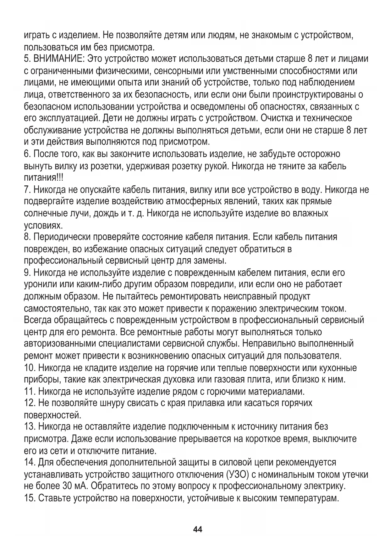 следующие инструкции. Производитель не несет ответственности за любой ущерб, возникший в результате неправильного использования. (RU) РУССКИЙ(RU) РУССКИЙ44