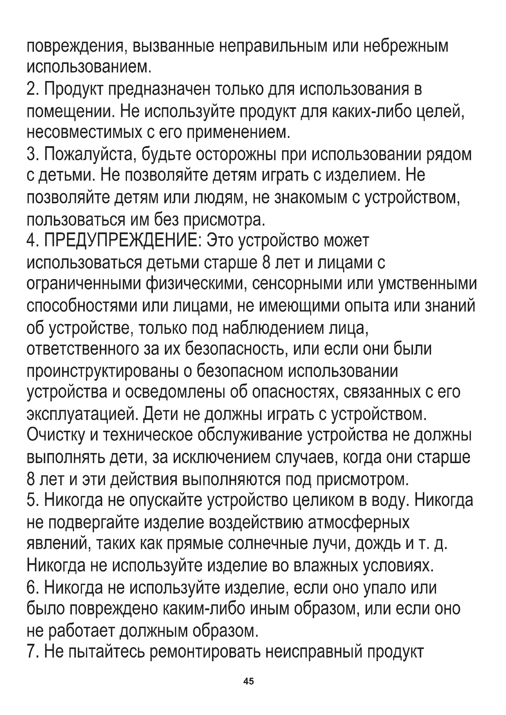 7. Не пытайтесь ремонтировать неисправный продукт