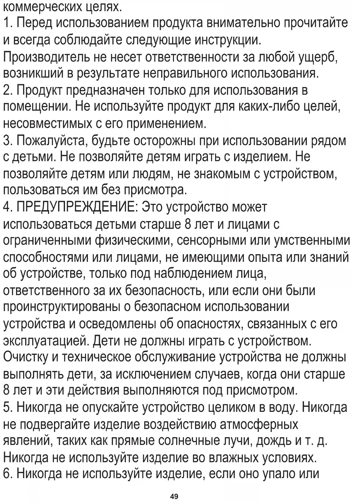6. Никогда не используйте изделие, если оно упало или