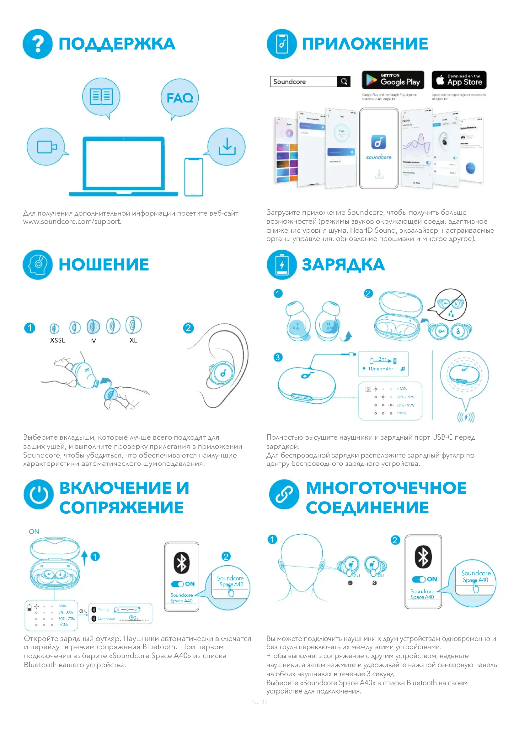 РУКОВОДСТВО ПОЛЬЗОВАТЕЛЯ Space A40 soundcore