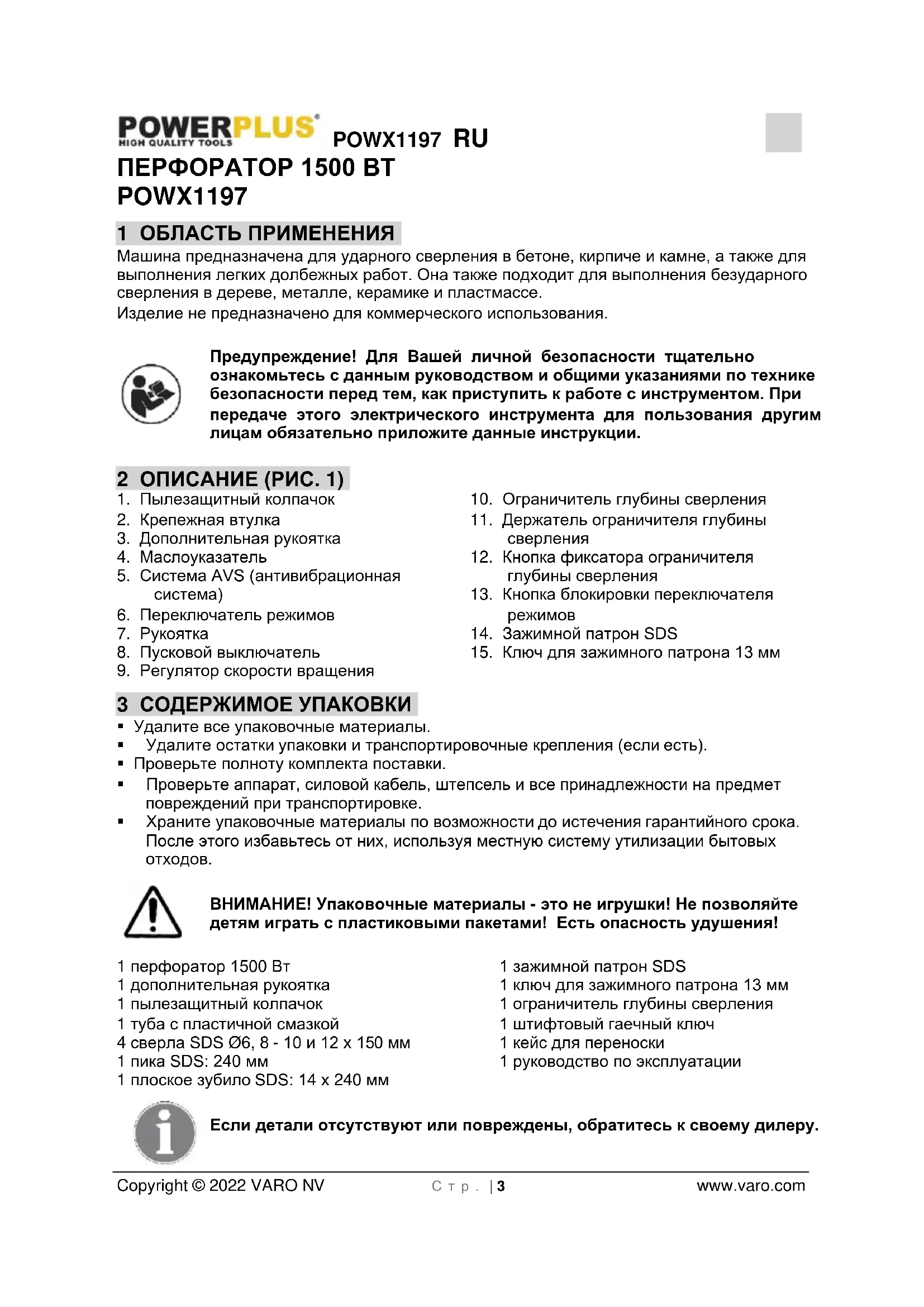 POWX1197 - дрель PowerPlus - Бесплатное руководство пользователя