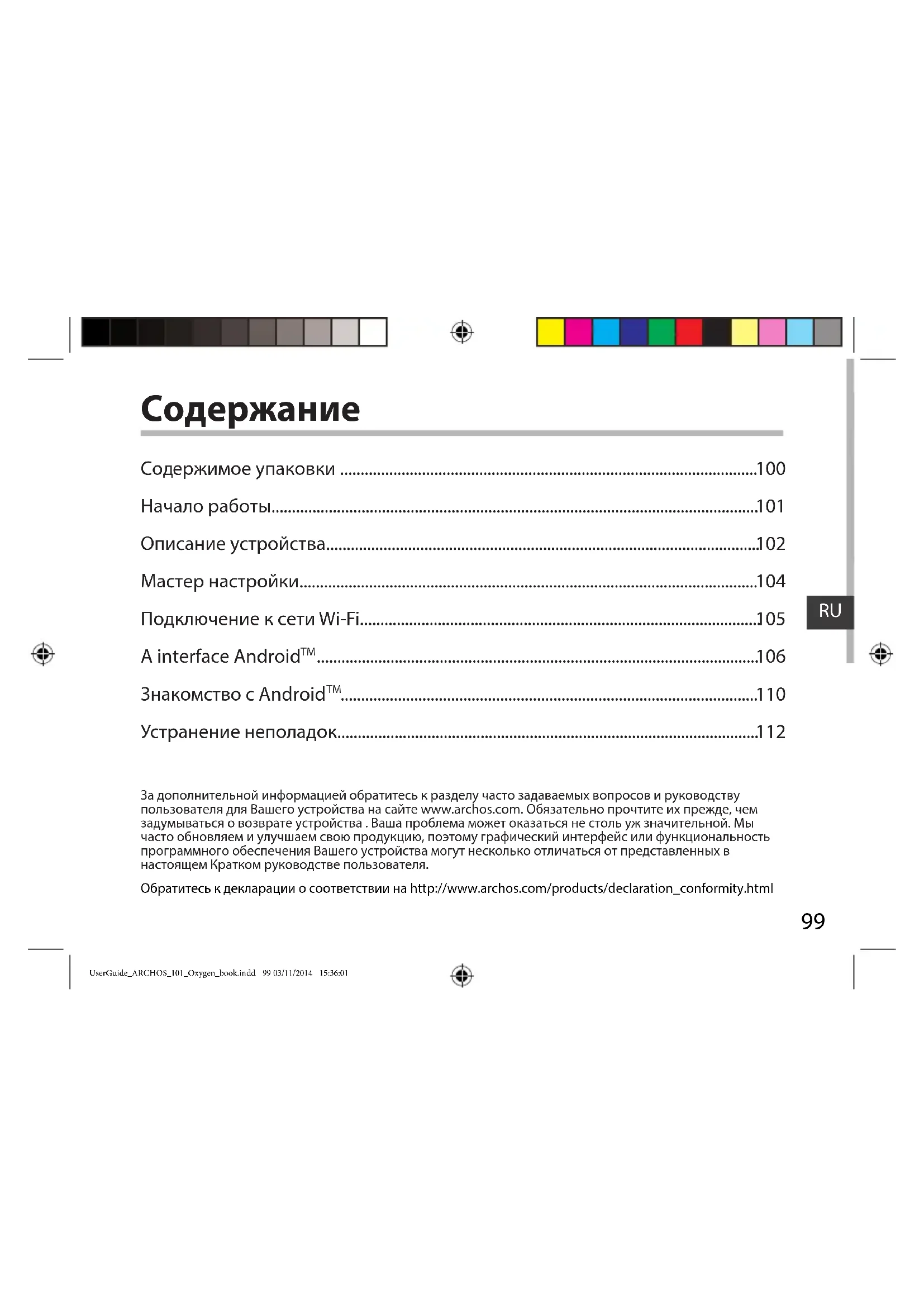 Найдите руководство к устройству бесплатно Oxygen 101s ARCHOS в формате PDF.