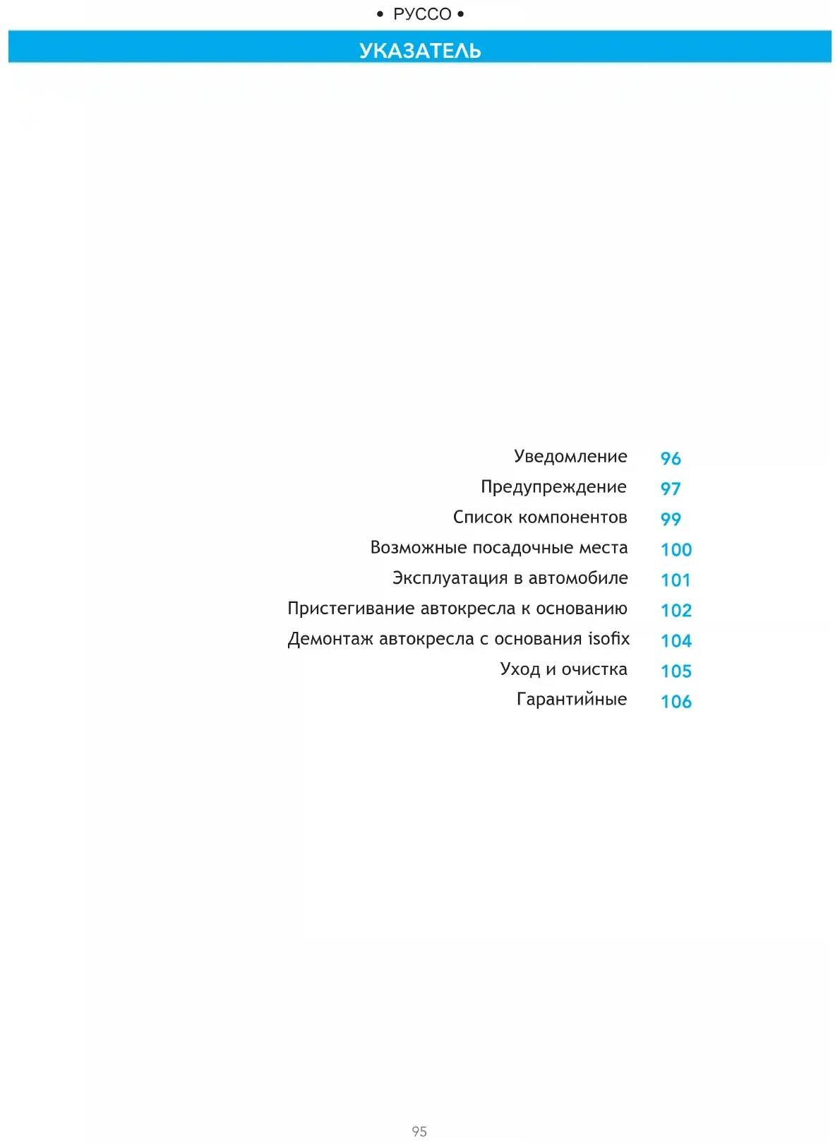 Уведомление Предупреждение Список компонентов Возможные посадочные места Эксплуатация в автомобиле Пристегивание автокресла к основанию Демонтаж автокресла с основания isox Уход и очистка Гарантийные