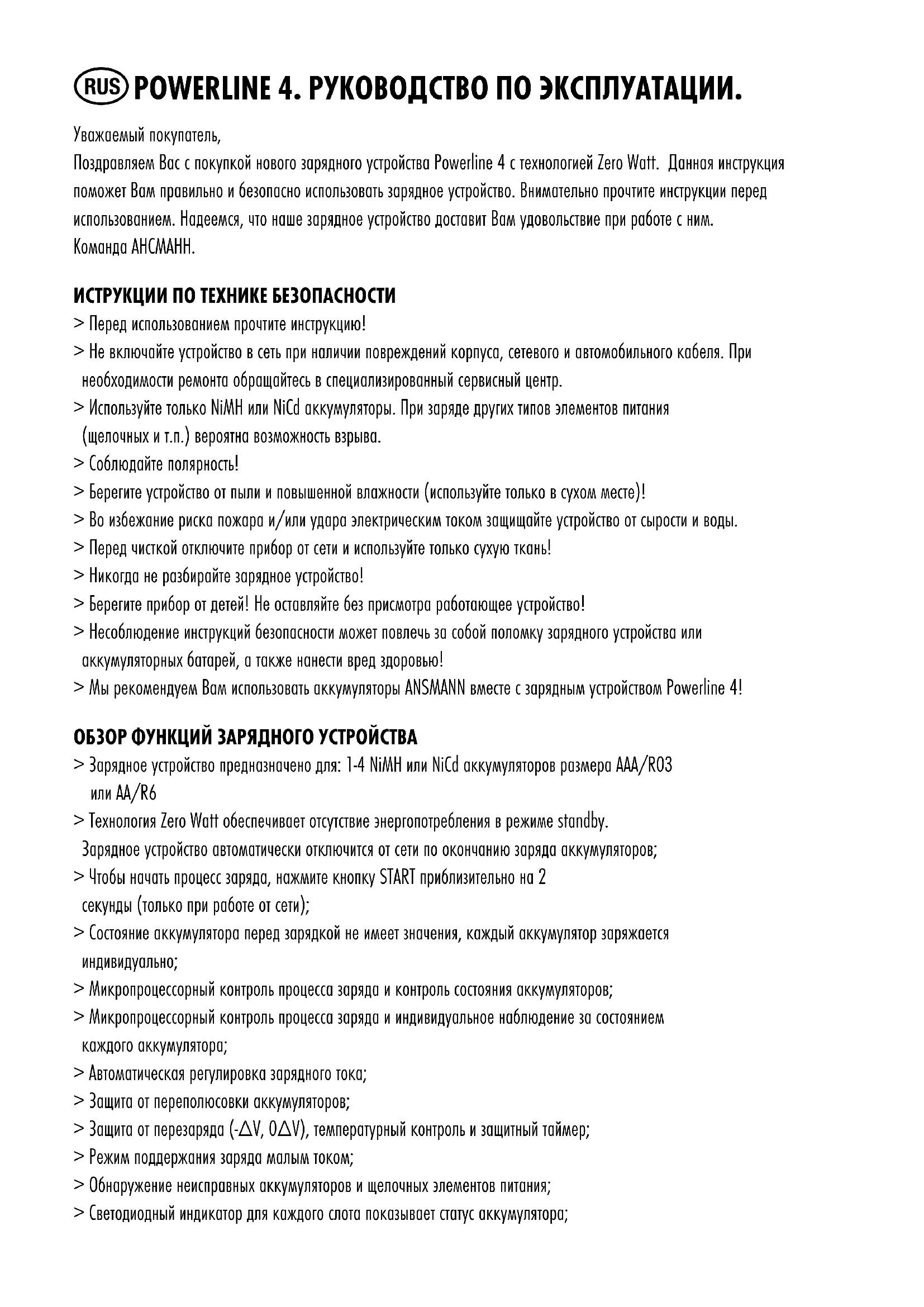Powerline 4 Zero Watt - Зарядное устройство для батареек ANSMANN - Бесплатное руководство пользователя