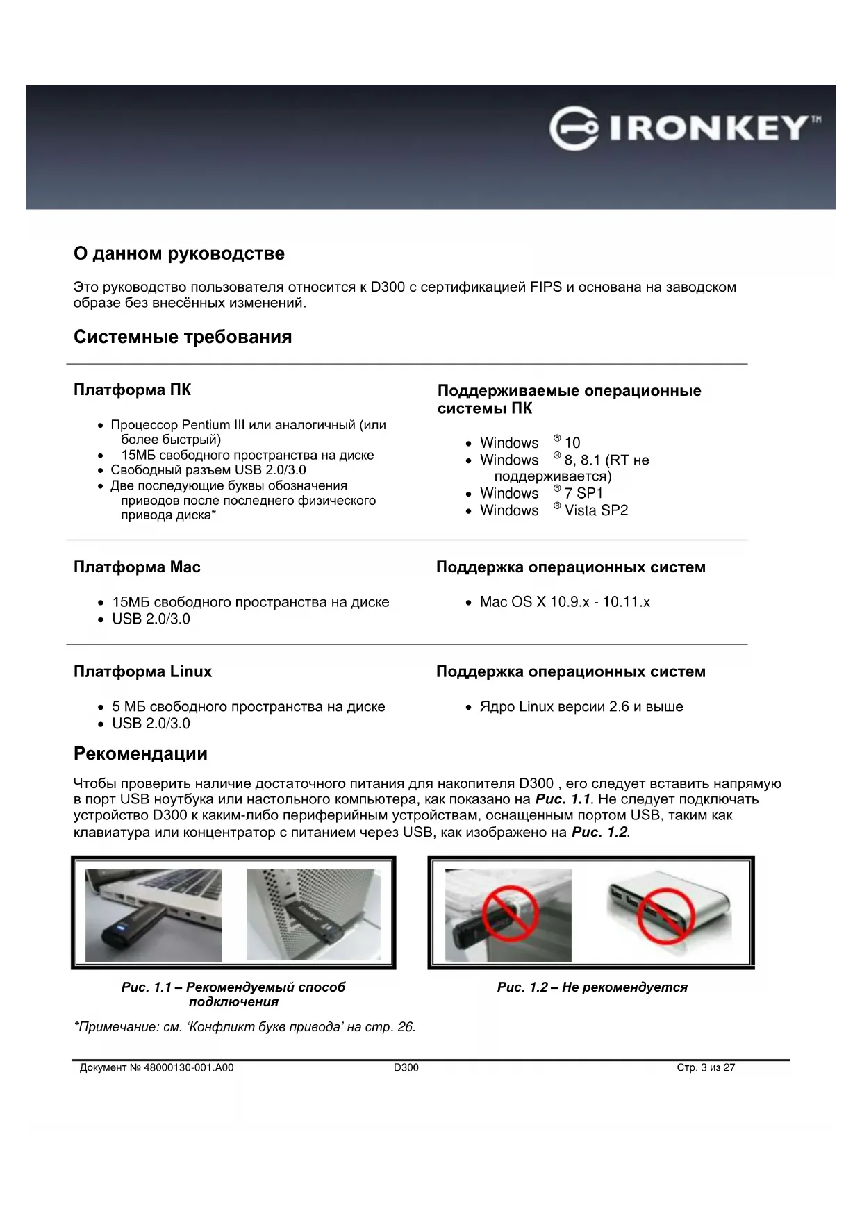 IRONKEY™ D300 ЗАЩИЩЕННЫЙ ФЛЕШ-НАКОПИТЕЛЬ USB 3.0 Руководство пользователяДокумент № 48000130-001.A00 D300 Стр. 2 из 27