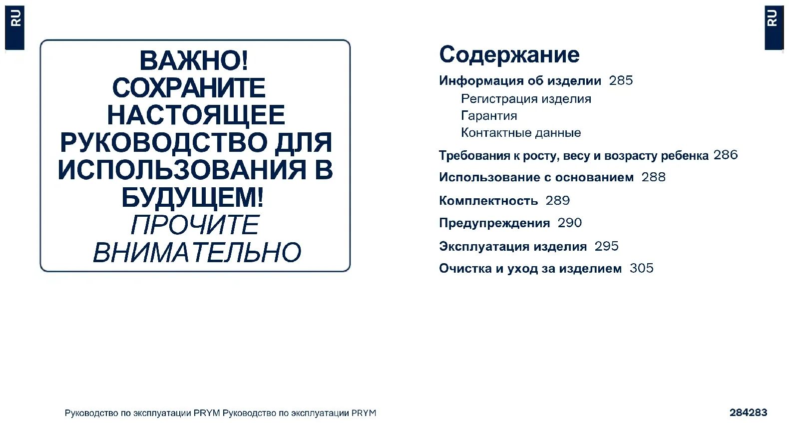 Руководство по эксплуатации PRYM Руководство по эксплуатации PRYM Возраст ребенка 0-15