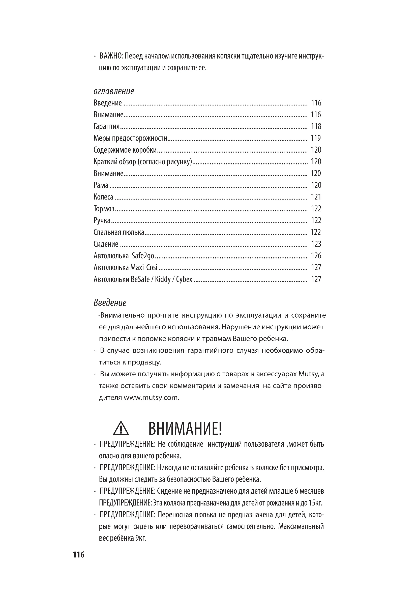 - Вы можете получить информацию о товарах и аксессуарах Mutsy, а также оставить свои комментарии и замечания на сайте произво- дителя www.mutsy.com. ⚠ ВНИМАНИЕ!