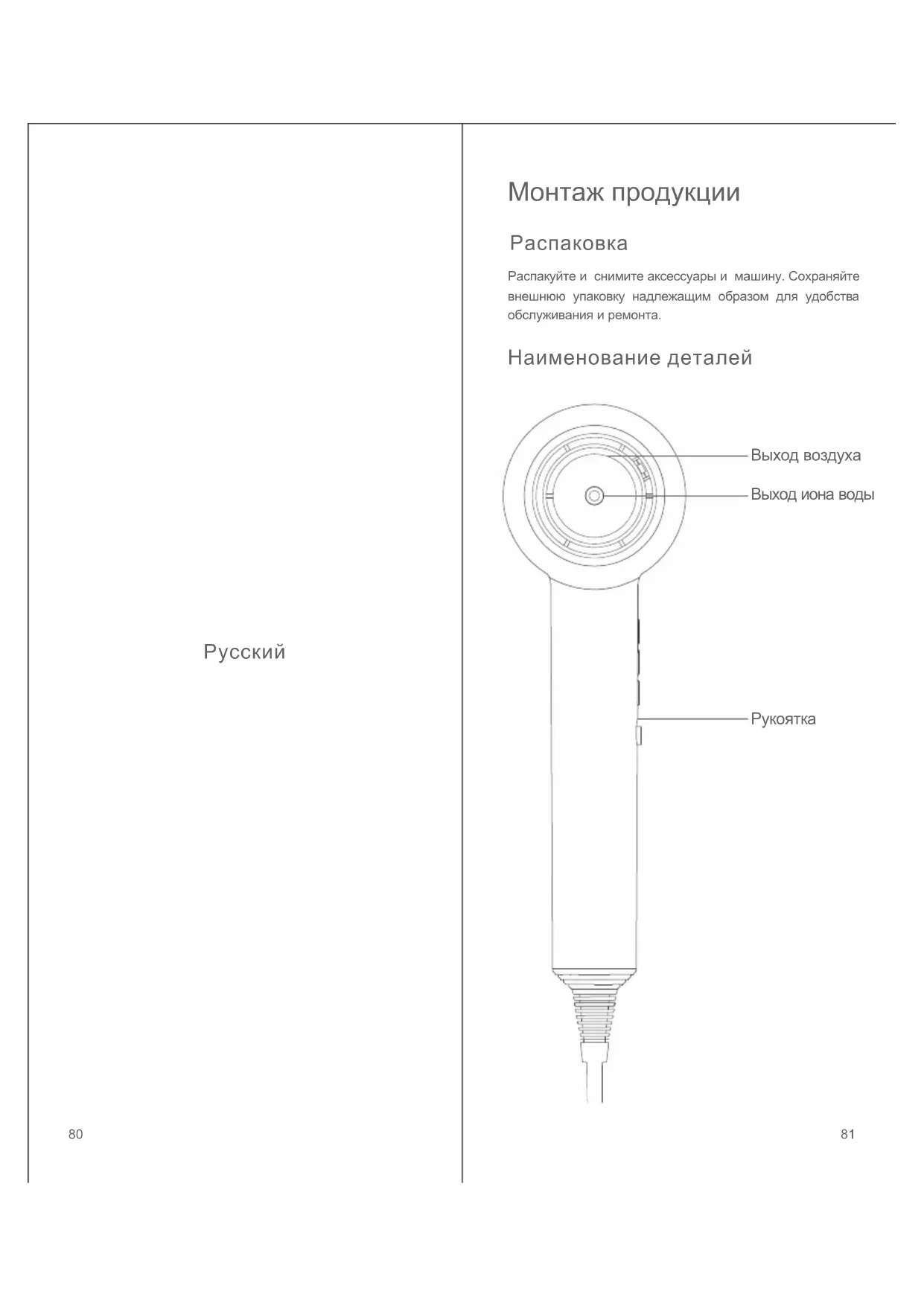 ВысокаяСредняяНизкаяВысокаяСредняяНизкая Машина-фен × 1 Насадка быстрой сушки × 1 Насадка прически × 1 Насадка диффузора × 1 Руководство по эксплуатации × 1 Упаковочный список Использование продукции