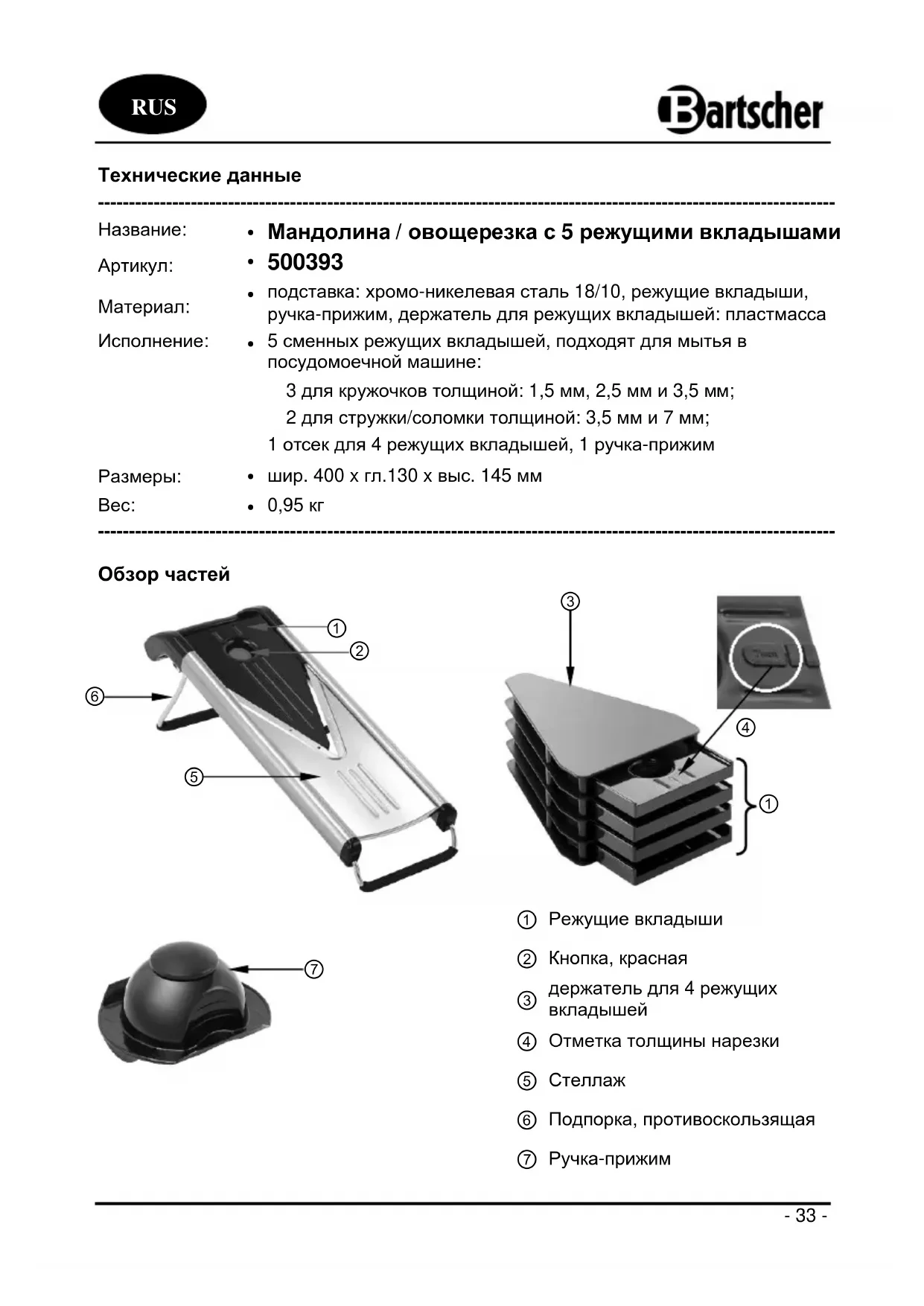 500393 - Слайсер BARTSCHER - Бесплатное руководство пользователя