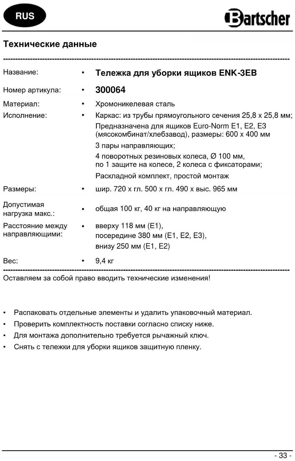 - Снять с тележки для уборки ящиков защитную пленку. RUS- 34 - Объем поставки / Название части