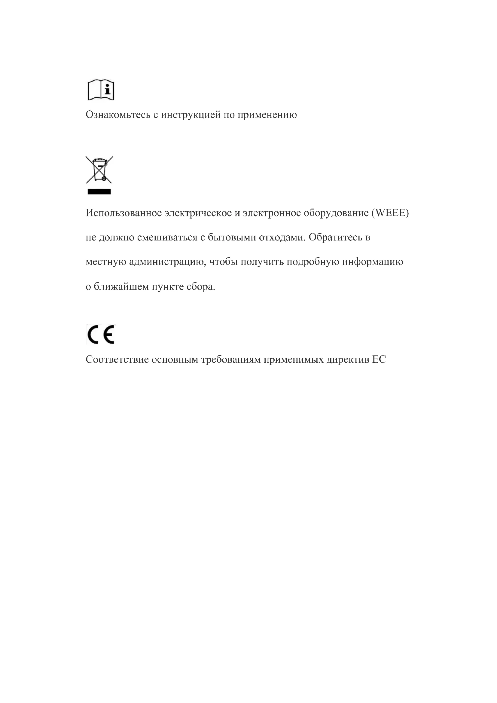 Использованное электрическое и электронное оборудование (WEEE) не должно смешиваться с бытовыми отходами. Обратитесь в местную администрацию, чтобы получить подробную информацию о ближайшем пункте сбора.
