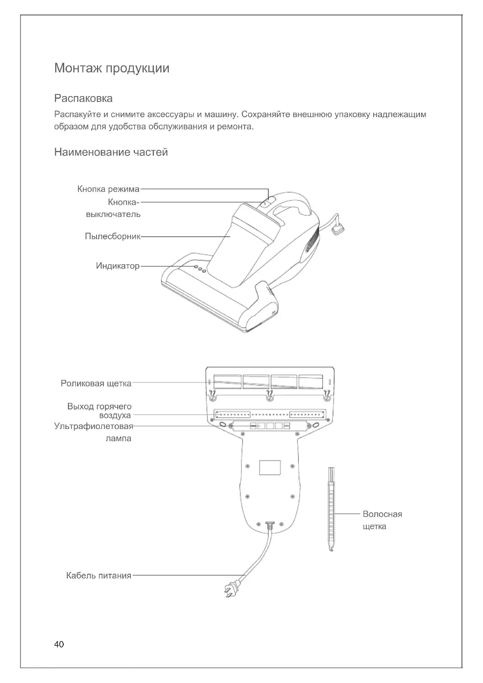 пылевых клещей, из выхода горячего воздуха продолжает выпускаться горячий воздух, и температура горячего воздуха высокая, поэтому не прикасайтесь к выходу горячего воздуха рукой во время работы машины. Очистка и обслуживание