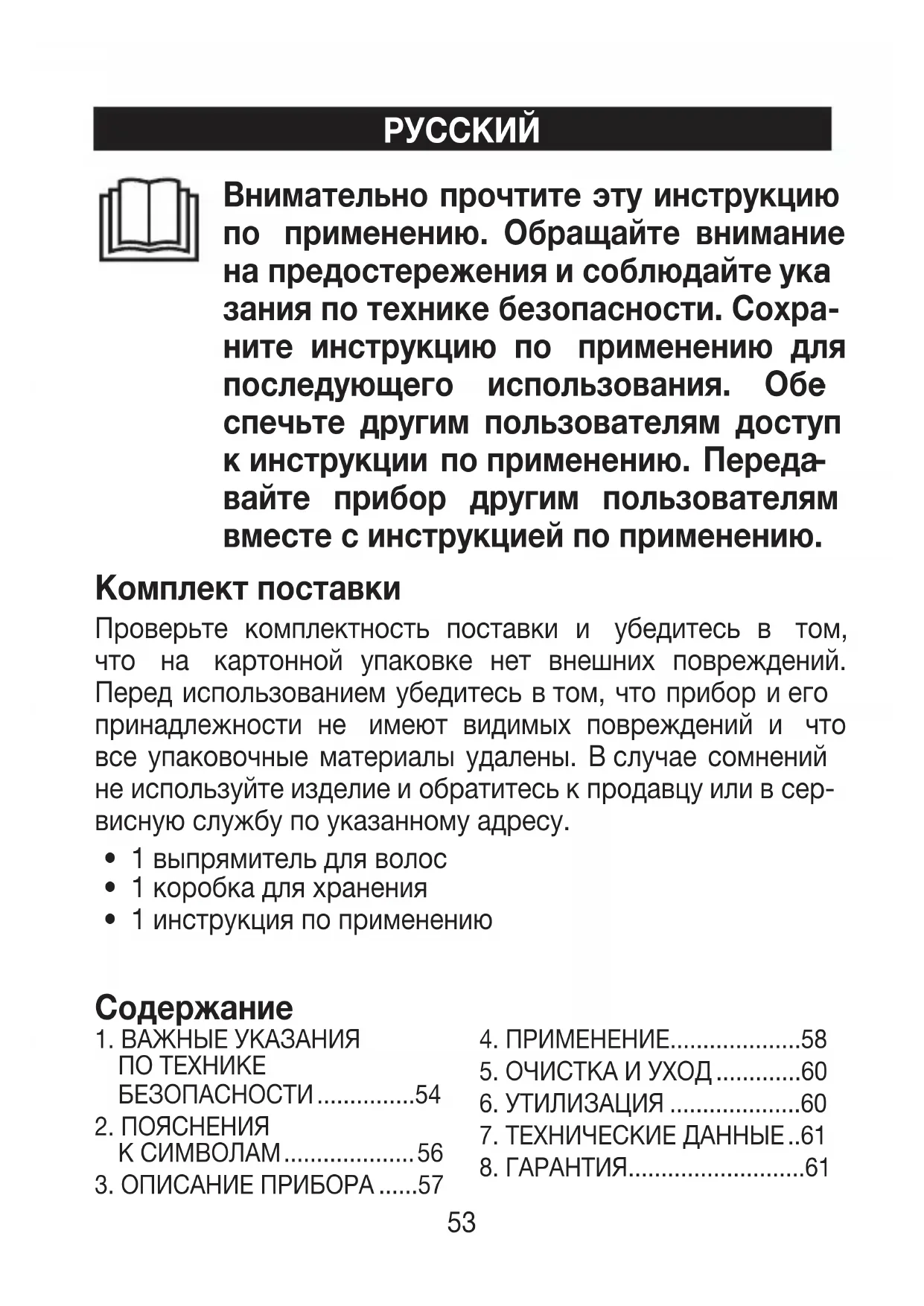 Выпрямитель для волос предназначен для лич- ного пользования— только для распрямления волос ипридания имформы!