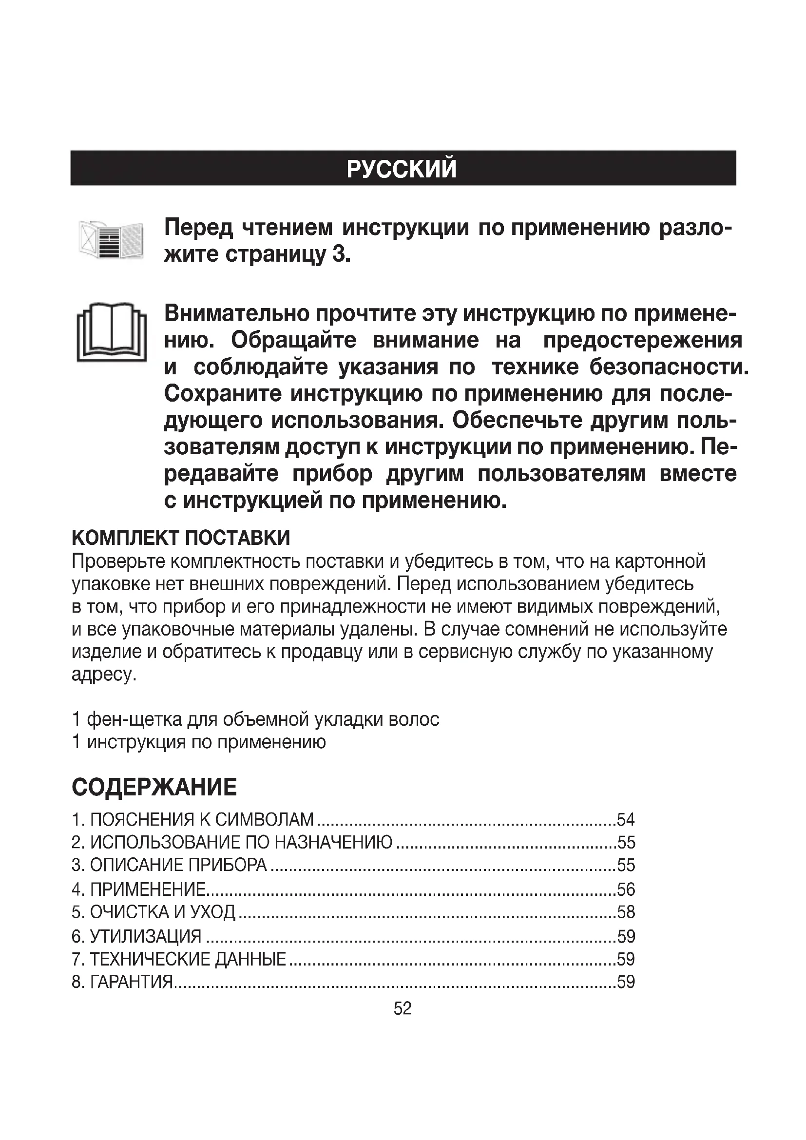 Фен-щетка для объемной укладки волос предназначен исключительно для стайлинга волос вдомашних условиях иврамках личного пользования! Предупреждение Используйте прибор исключительно: