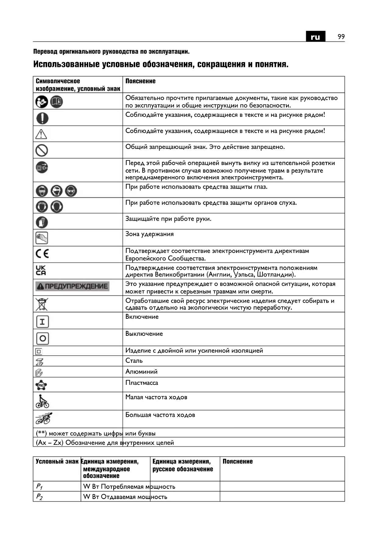 Перевод оригинального руководства по эксплуатации. Использованные условные обозначения, сокращения и понятия. Символическое изображение, условный знак