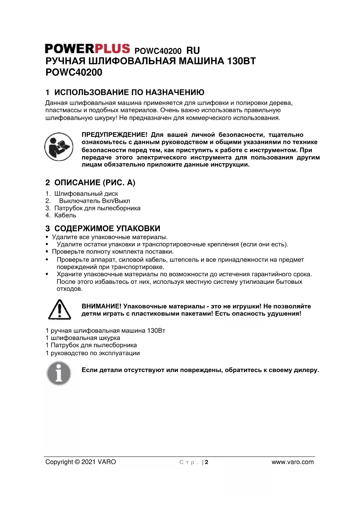 РУКОВОДСТВО ПОЛЬЗОВАТЕЛЯ POWC40200 PowerPlus