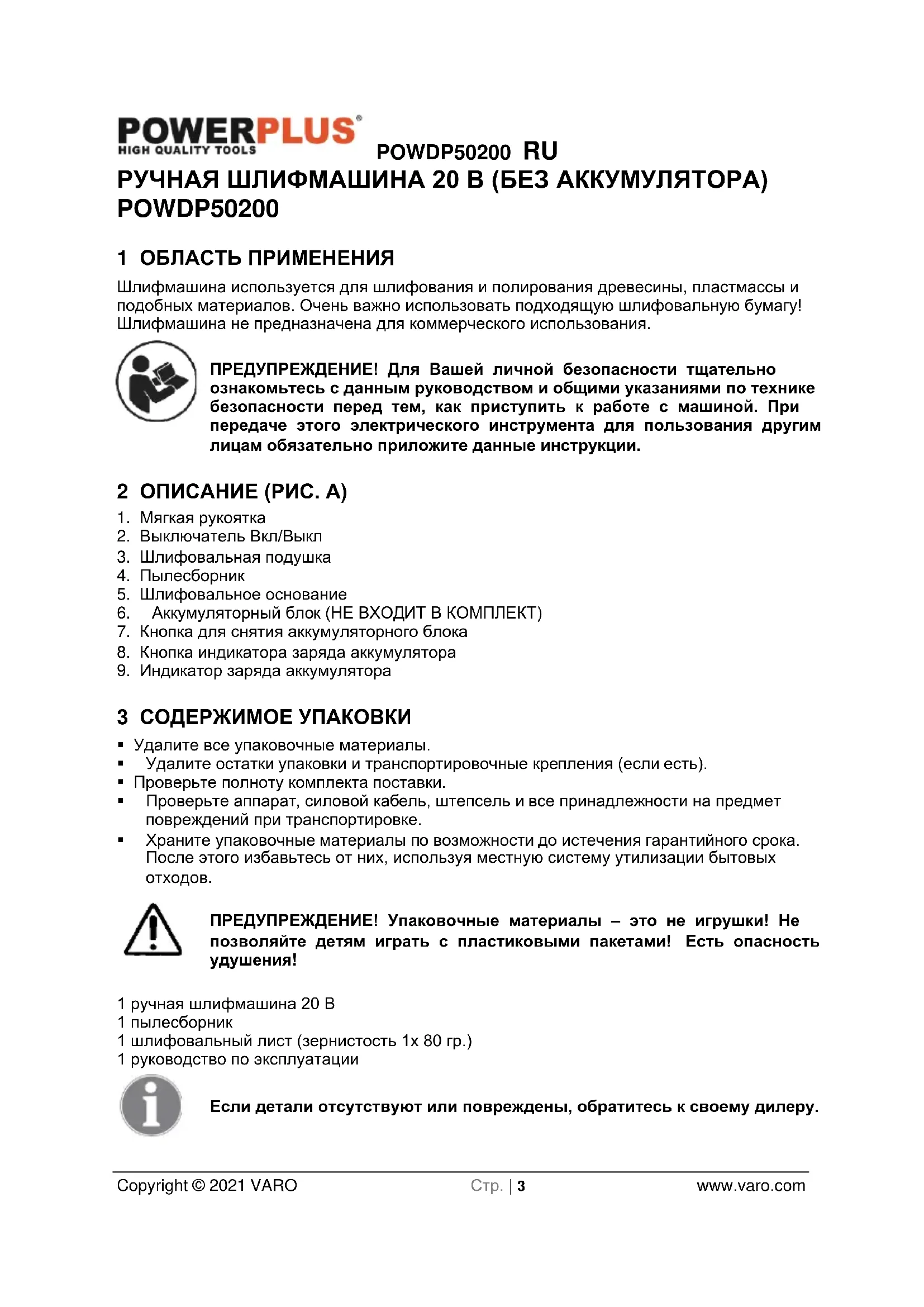 РУКОВОДСТВО ПОЛЬЗОВАТЕЛЯ POWDP50200 PowerPlus