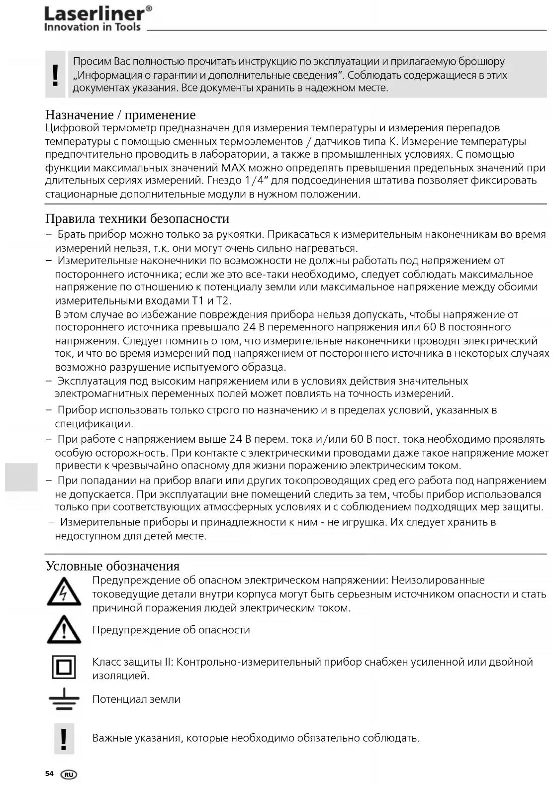 РУКОВОДСТВО ПОЛЬЗОВАТЕЛЯ ThermoMaster Laserliner