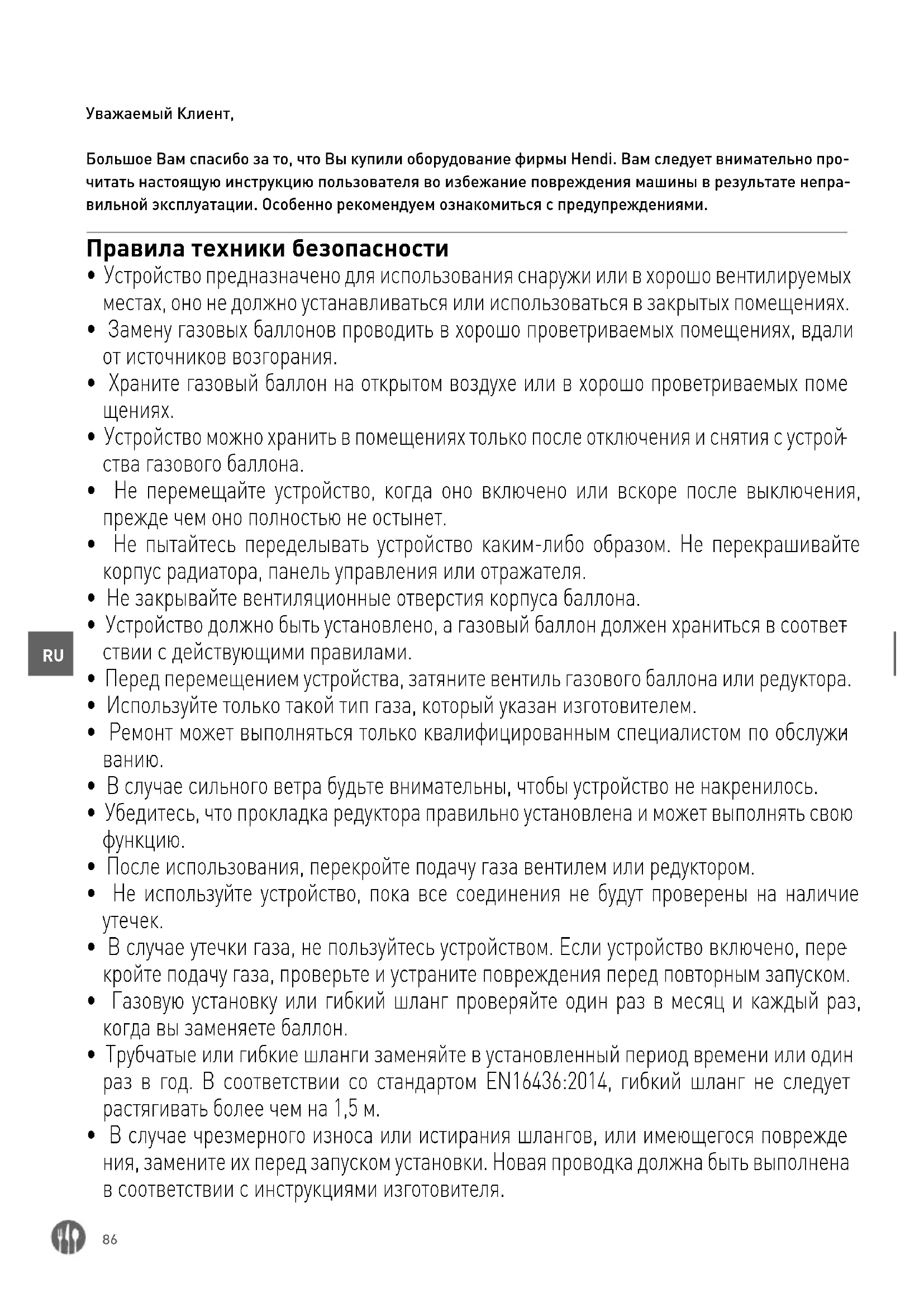 РУКОВОДСТВО ПОЛЬЗОВАТЕЛЯ Lounge Heater 272411 Hendi