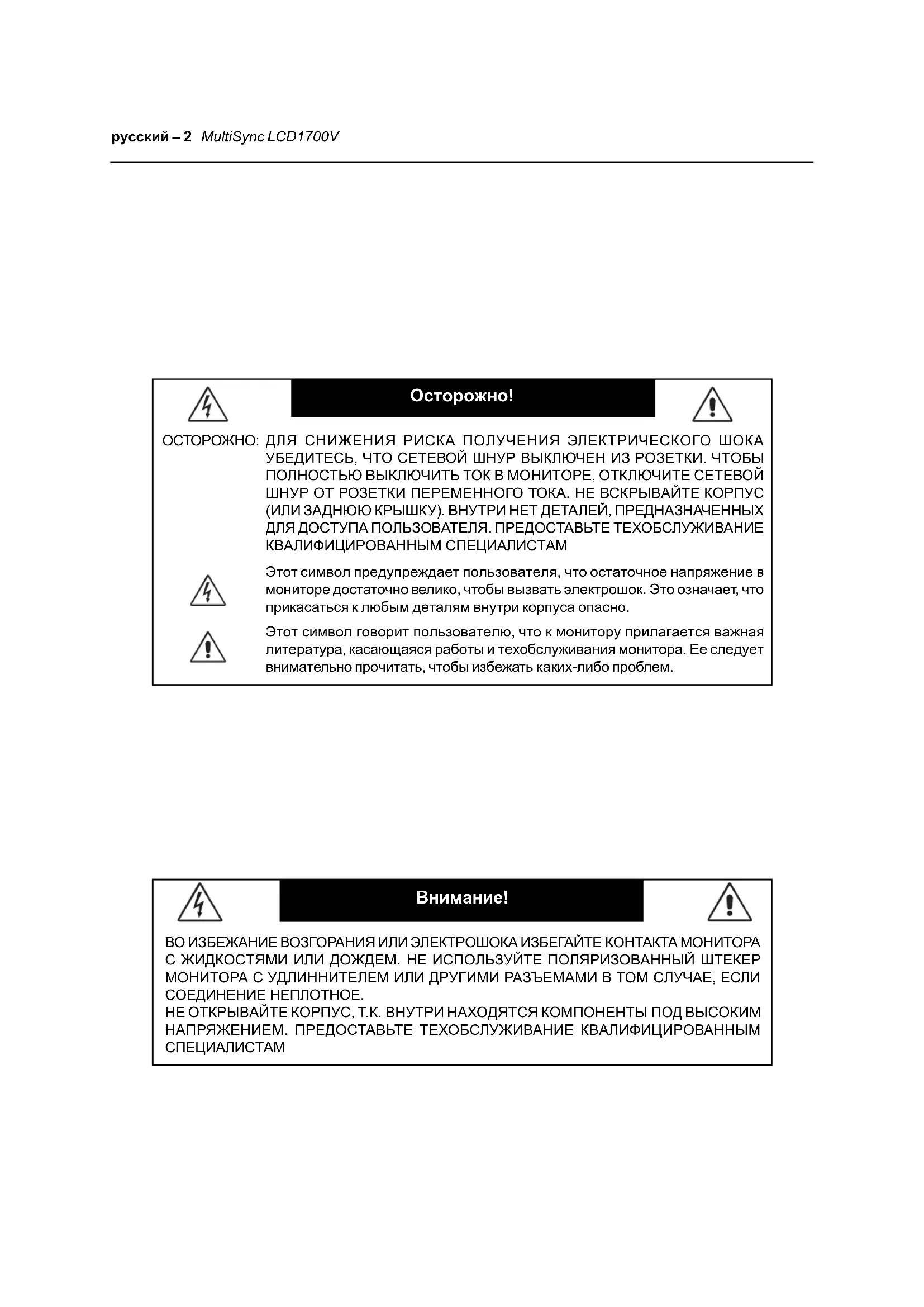 - Руководство пользователяpусский – 4 MultiSync LCD1700V