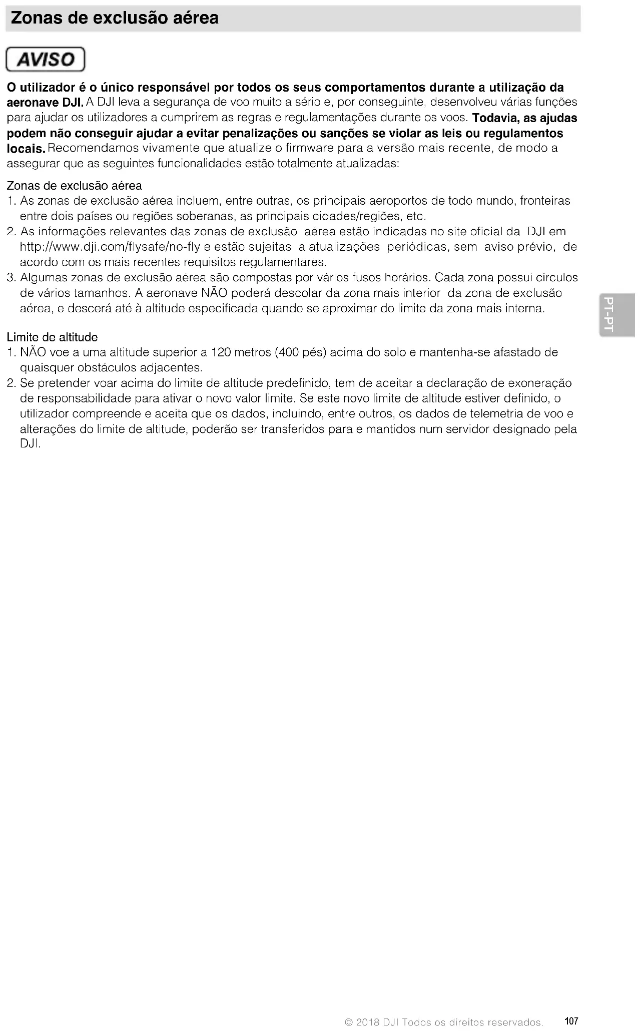 © 2018 DJI Все права защищены. Компания DJI всегда уделяет особое внимание безопасности полетов и разработала для этой цели разнообразные виды поддержки пользователей в области соответствия местным законам и нормативно- правовым актам. Однаковспомогательныефункцииневсостояниипомочьизбежатьштрафов илинаказанийвслучаенарушенияместныхзаконовилиправил. Мы настоятельно рекомендуем вам обновить прошивку до последней версии, чтобы полностью обновить следующую информацию: Зоны,запрещенныедляполетов