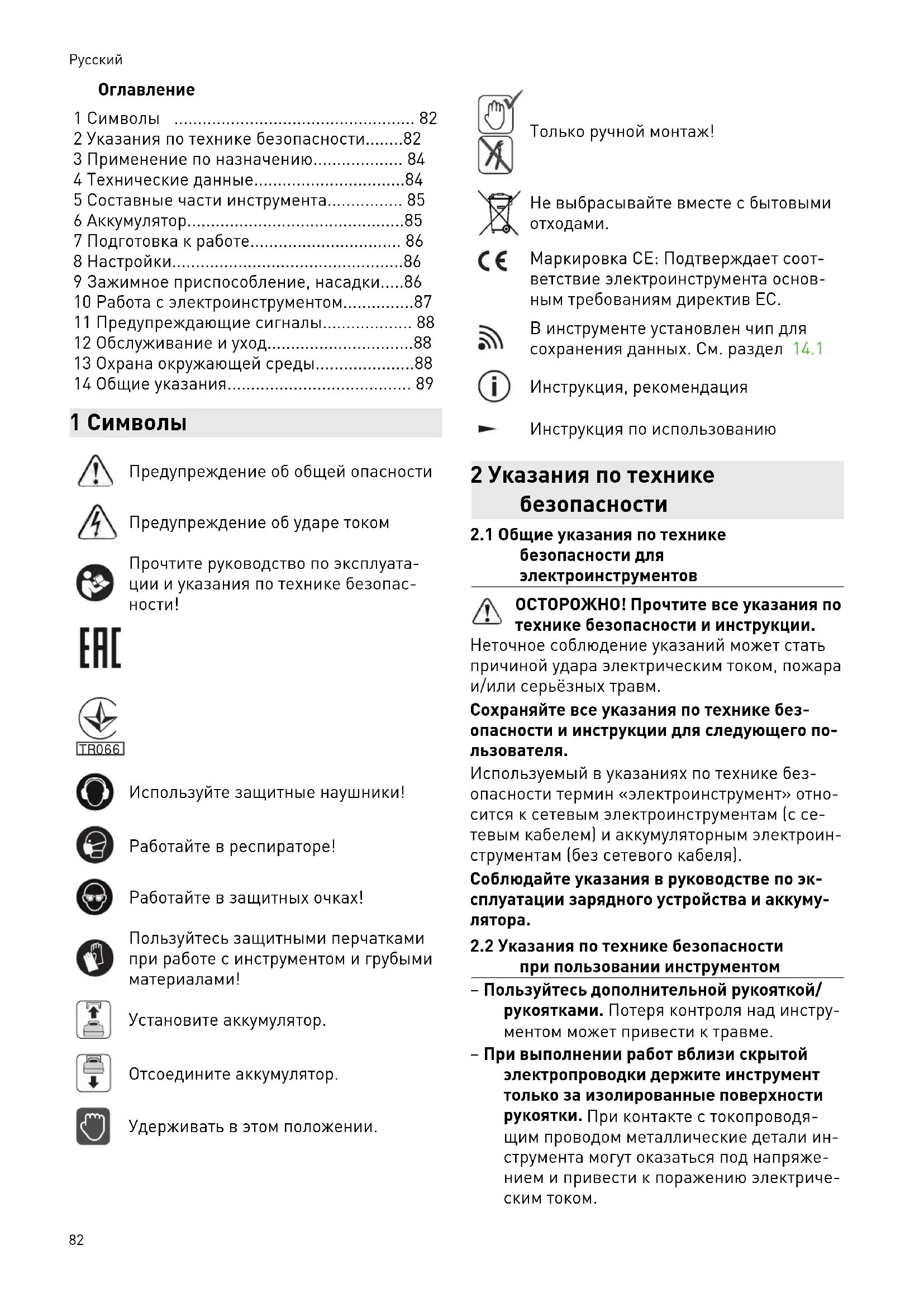 - 2 Указания по технике безопасности p. 82