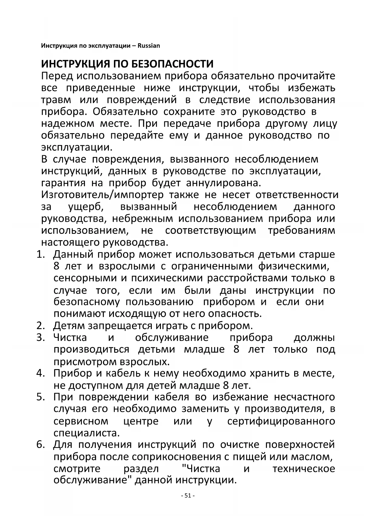 прибора после соприкосновения с пищей или маслом, смотрите раздел "Чистка и техническое обслуживание" данной инструкции.- 52 -