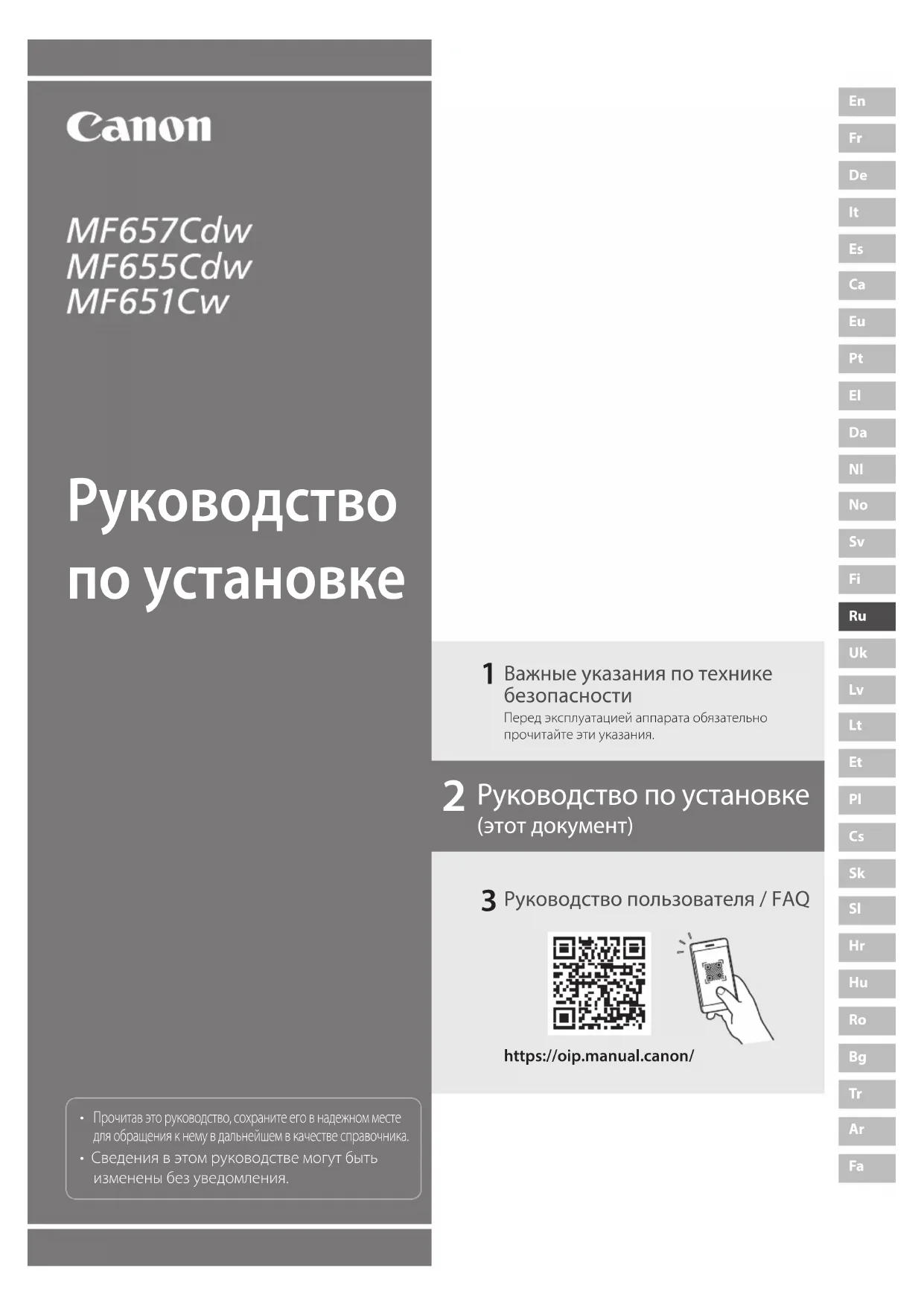 Прочитав это руководство, сохраните его в надежном месте для обращения к нему в дальнейшем в качестве справочника.• Сведения в этом руководстве могут быть изменены без уведомления.https://oip.manual.canon/ Важные указания по технике безопасностиПеред эксплуатацией аппарата обязательно прочитайте эти указания. Руководство пользователя / FAQ