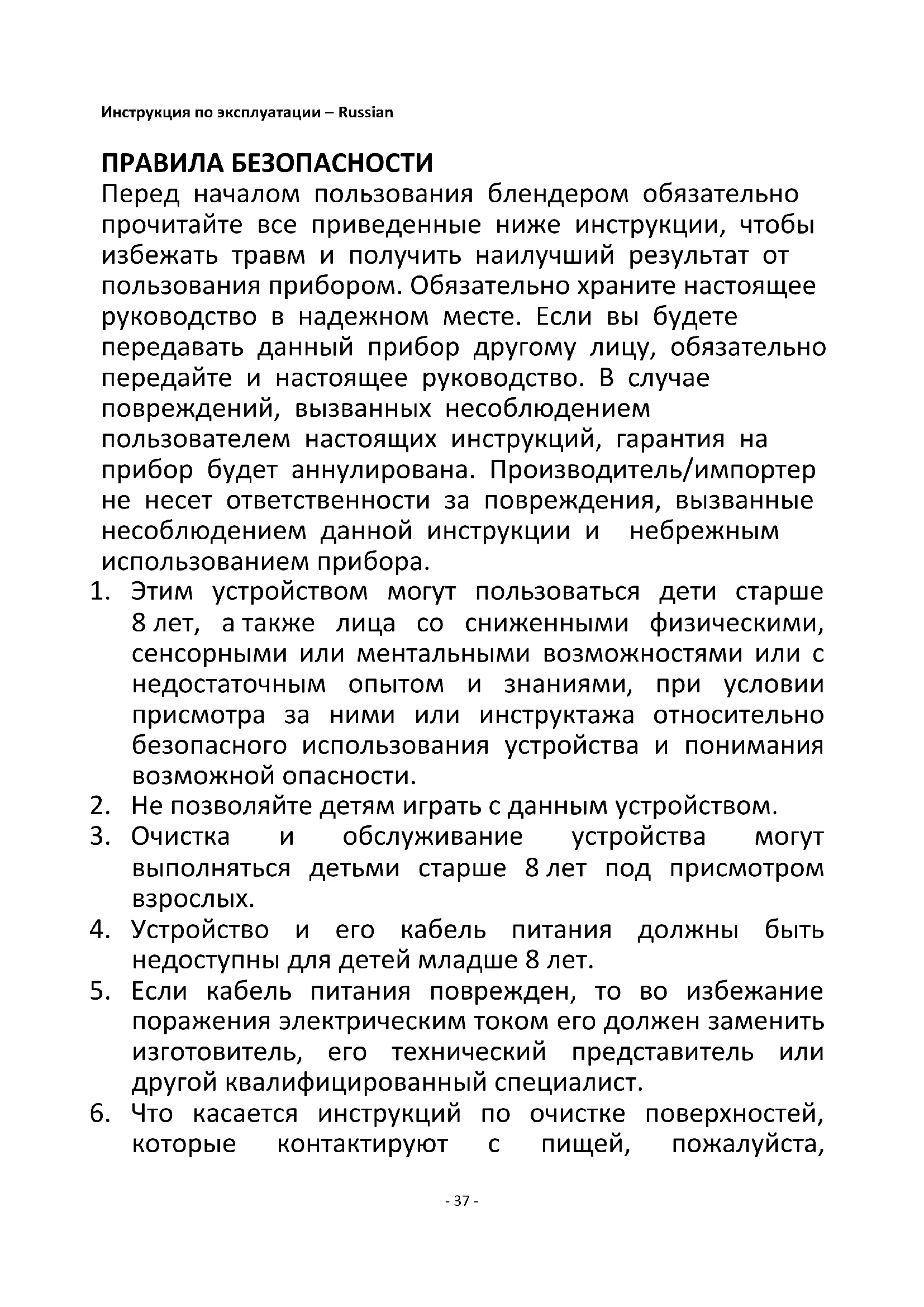 которые контактируют с пищей, пожалуйста,- 38 - обратитесь к пункту “ОЧИСТКА И ОБСЛУЖИВАНИЕ” руководства.