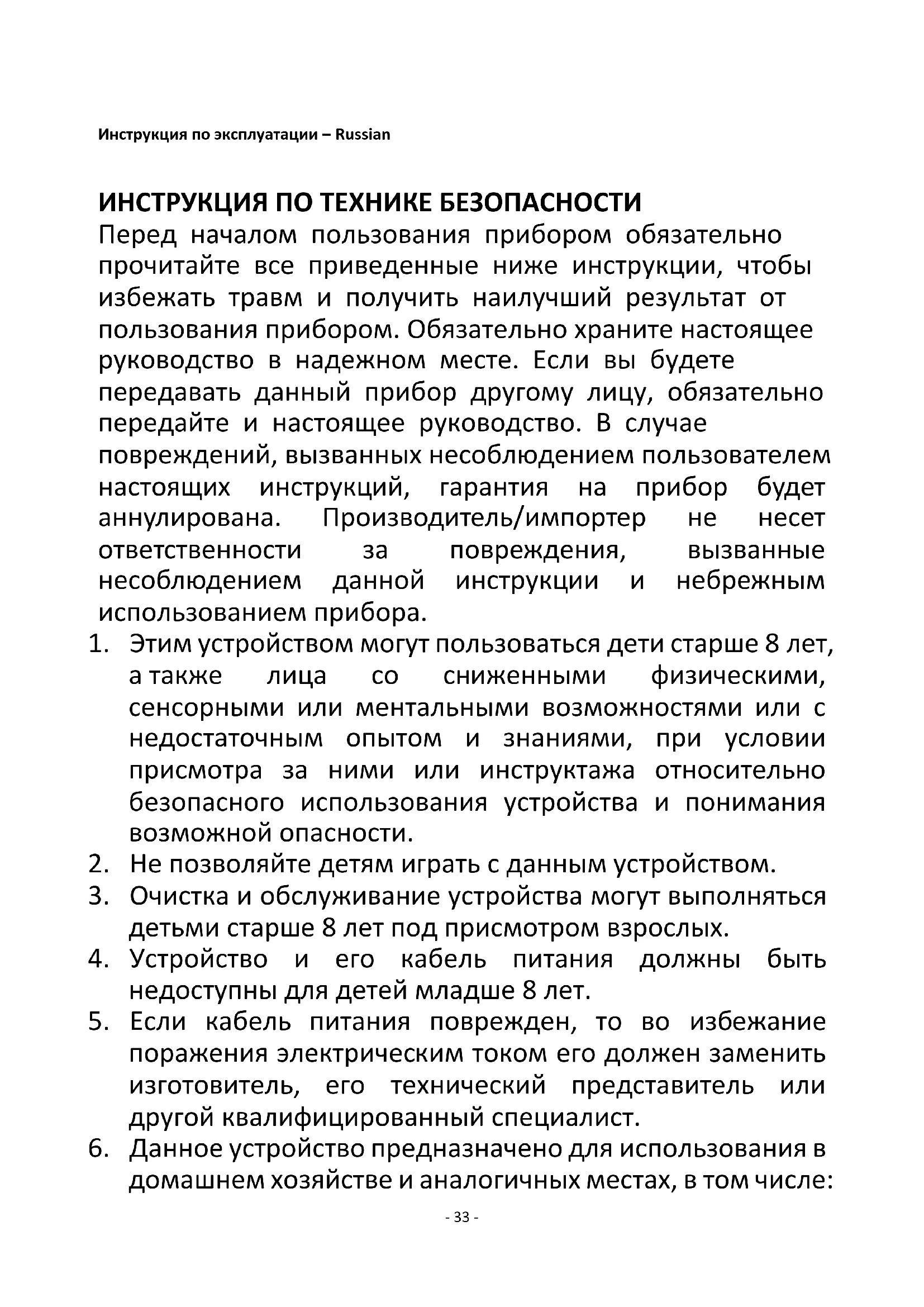 2. Не позволяйте детям играть с данным устройством.