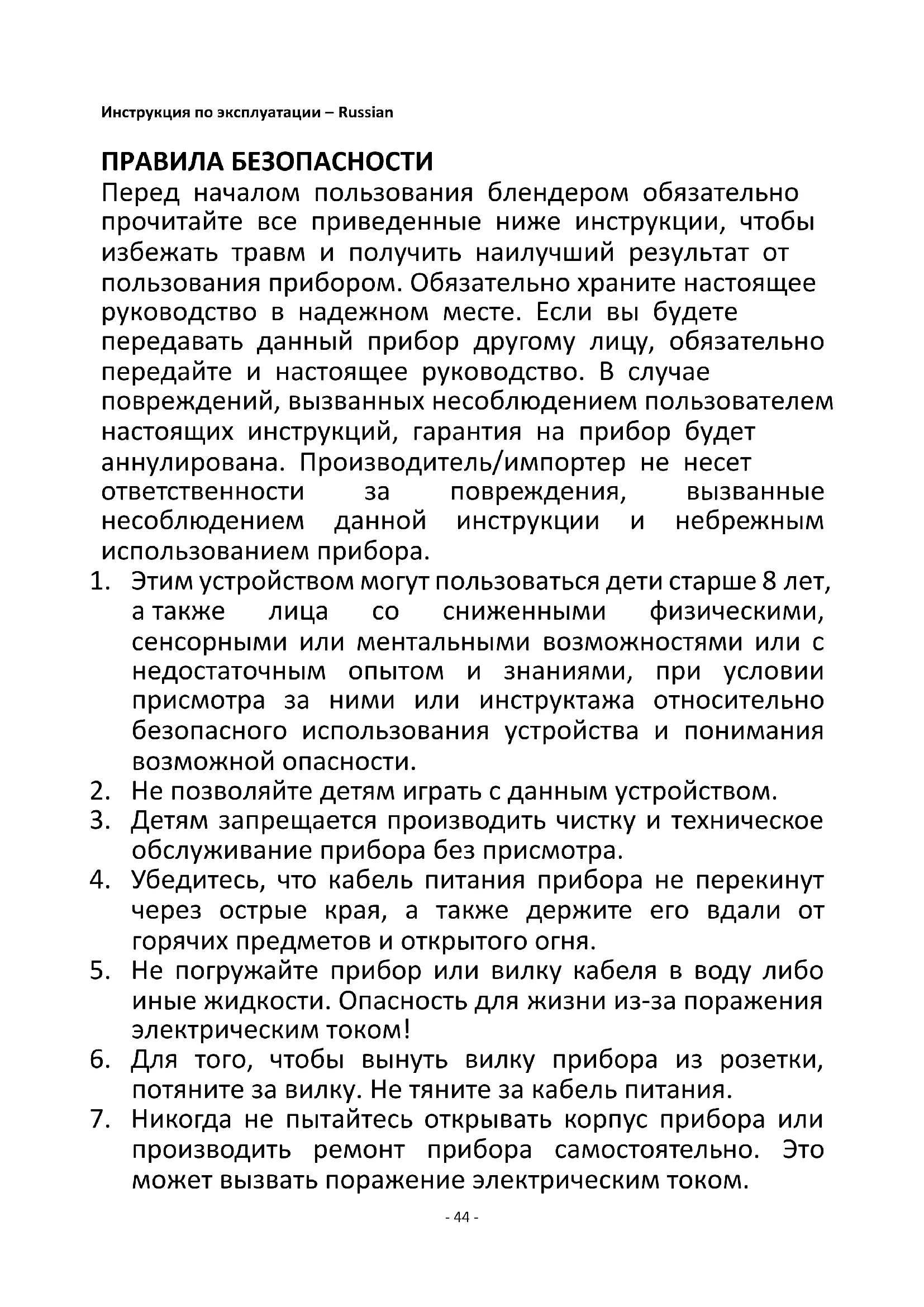 10. Не используйте прибор не по назначению.