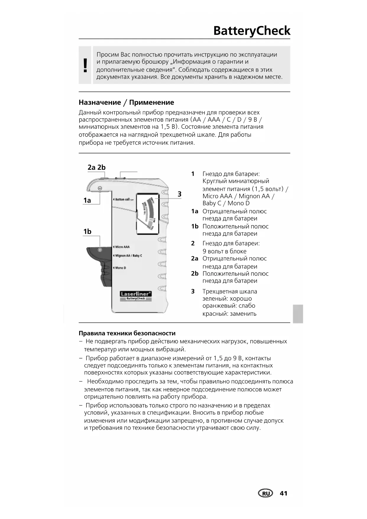 РУКОВОДСТВО ПОЛЬЗОВАТЕЛЯ BatteryCheck Laserliner
