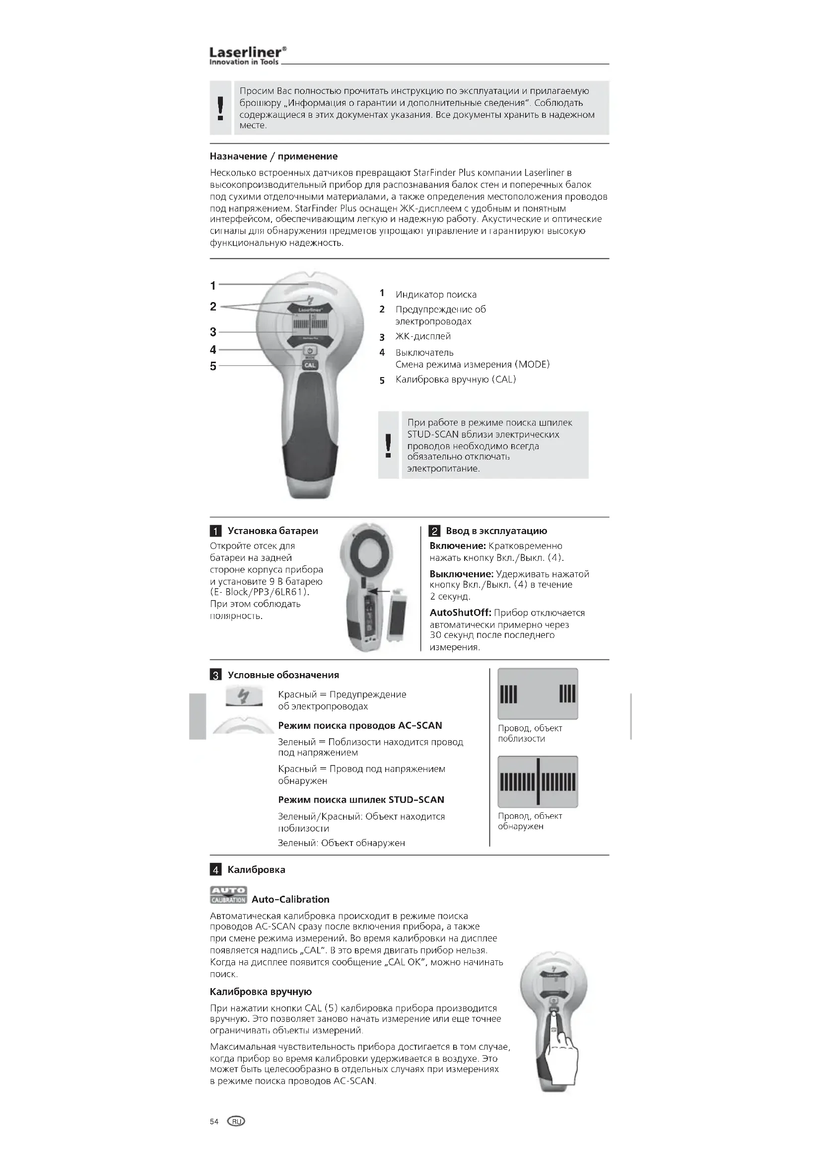 РУКОВОДСТВО ПОЛЬЗОВАТЕЛЯ StarFinder Plus Laserliner